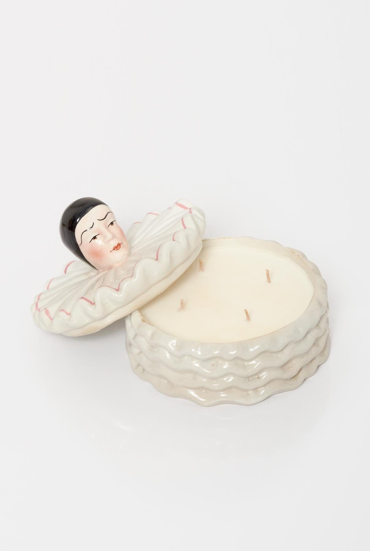 Isabel Collins Dufresne moved, at the age of 17, from France to New York. There she became Dali's muse, who introduced her to Andy Warhol in 1963. It was he who baptized her as "Ultraviolet" because of the color she used in her hair and clothes. She shot 16 films with the Factory and kept artistic studios open in Nice and New York. This "Pierrot" box is a sample of his work as a ceramist. In 1980, after suffering a serious car accident, he embraced the Mormon faith and wrote the book "Famous for 15 minutes". He passed away in 2014 in Manhattan. Quite a character. This box has arrived from London and, now that it is a candle, it uses 240 grams of soy wax and pure cotton wicks. By VNICA