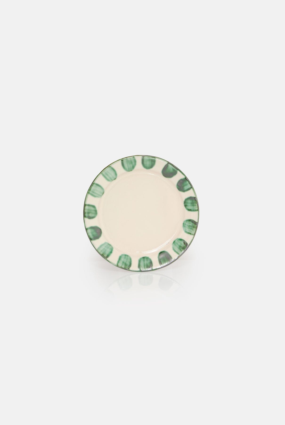 4 dessert plates from the green stripes collection. Totally handmade, so they are unique, no two are the same and may have some irregularities that make them even more special.