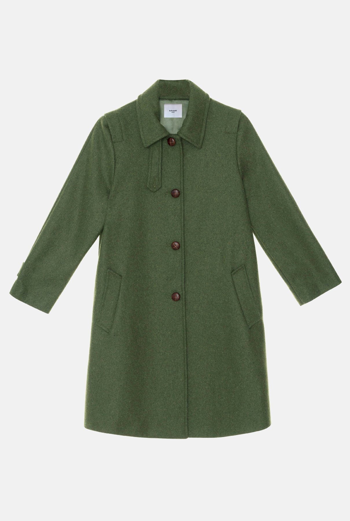 Long green cloth loden coat with viscose lining. Made in Spain.