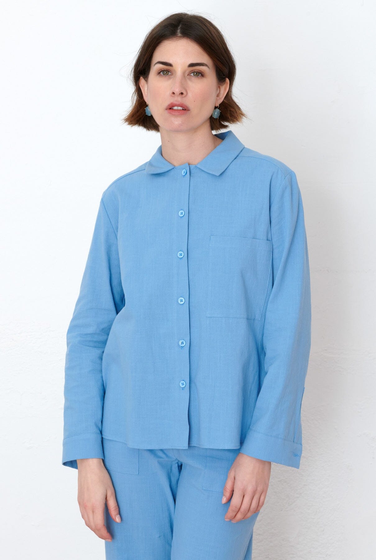 Shirt with long sleeve collar. With pocket on left side.
