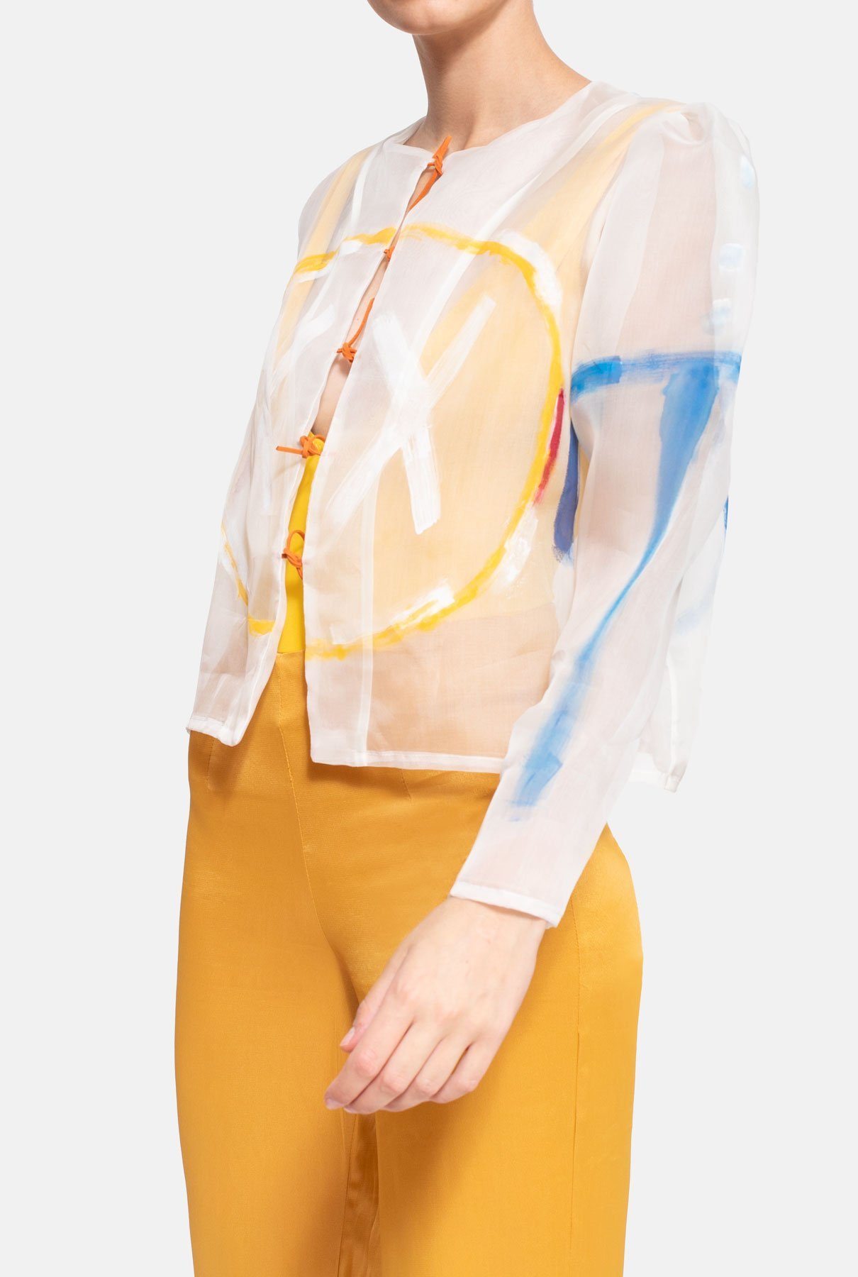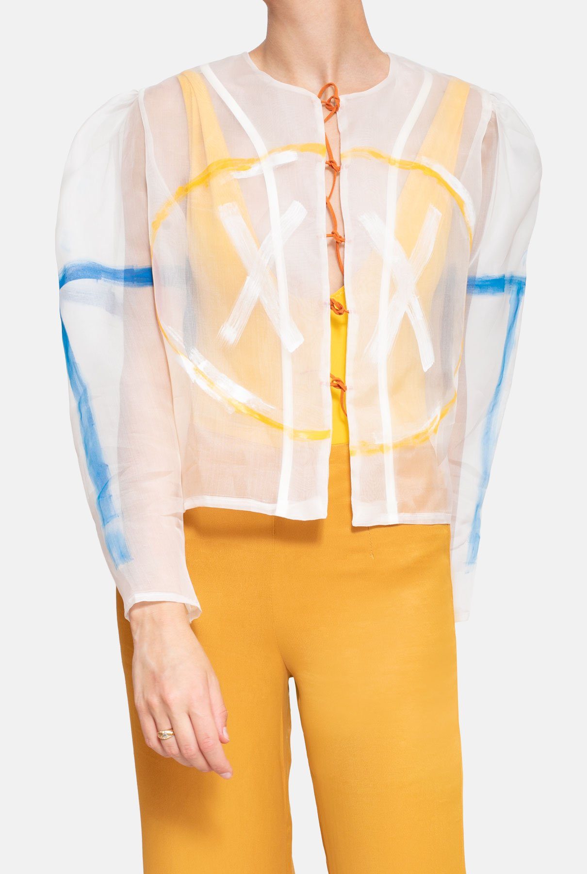 100% organza. Hand painted with textile paint