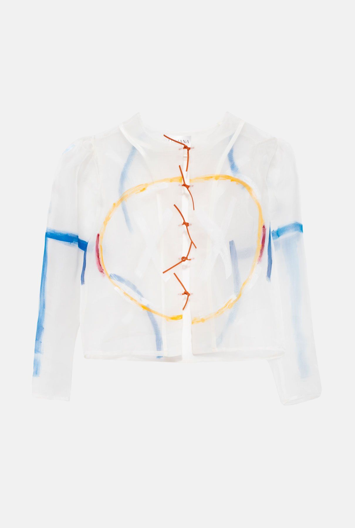100% organza. Hand painted with textile paintFITTING