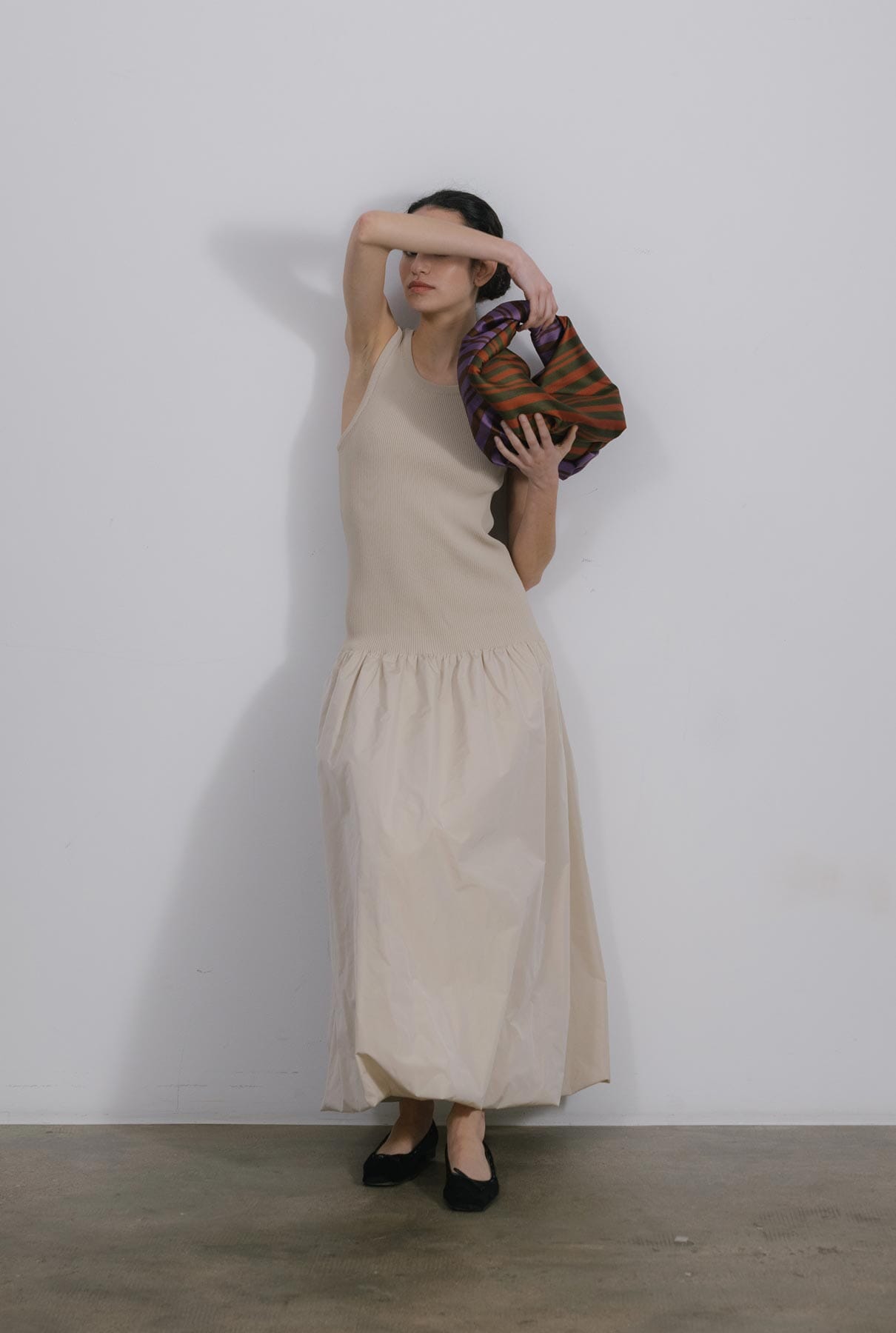 A versatile piece to add to your capsule collection as mini puff dress or a midi puff skirt, style from day-to-night for the season ahead. It has a knitted top and a fine poplin skirt finished with a chic baloon shape.
