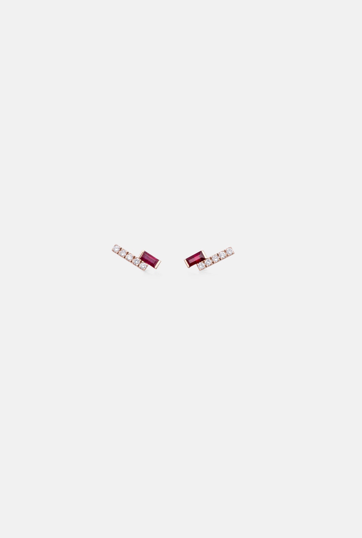 18kt rose gold earrings with diamonds (0,15 ct) and rubies (0,32 ct). Designed by Gold&Roses.