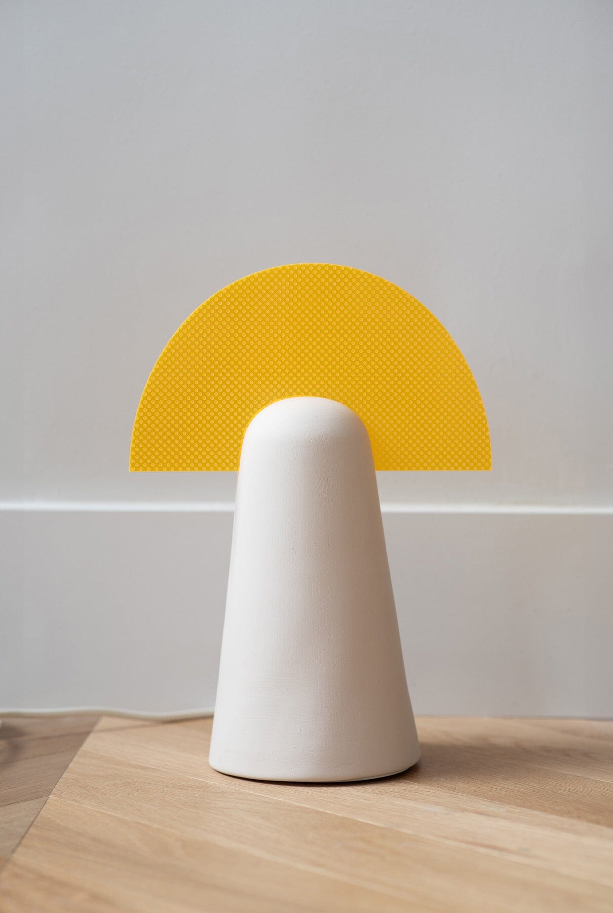 ceramics with the use of red clay and the manufacture on a potter's wheel by a potter artisan, while at the same time coexists with such a contemporary material as methacrylate. On the inside of each ceramic base contains a lighting system using an LED bulb.