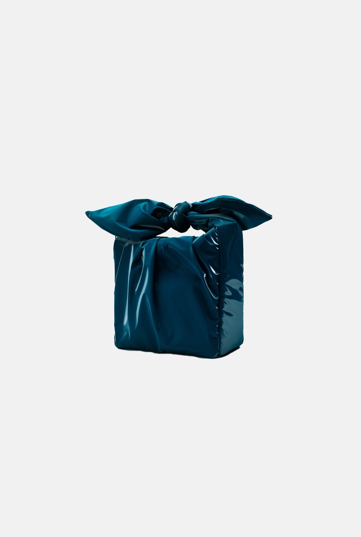 The Mary bag silhouette has all the ingredients to become one of your new essentials.This bag is Made in Spain and it s fabric has a "patent leather" look and feel. It is a soft pochette with knotted handle and magnetic top-button closure.