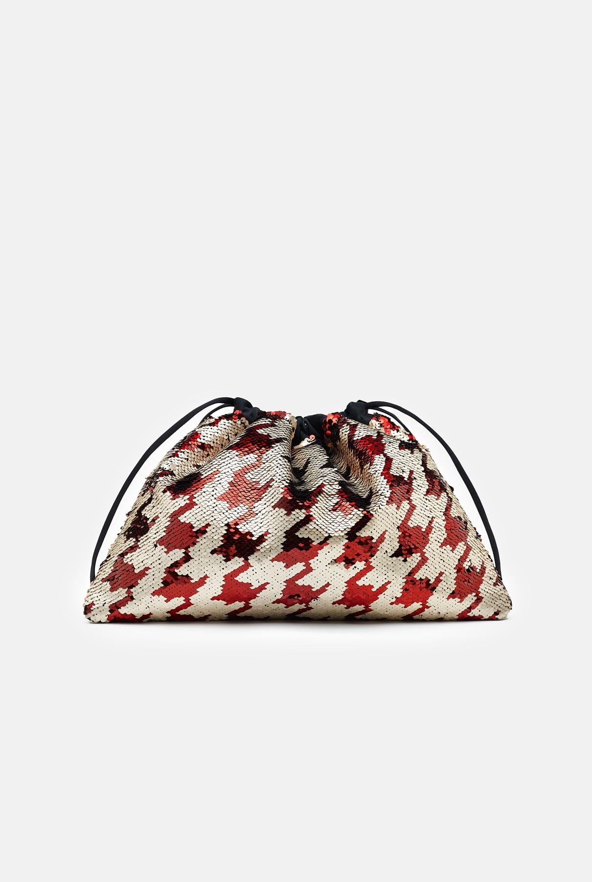 Proudly made in Spain, this pouch features a soft, effortless shape that is accentuated by the delicate textured sequin fabric and drawstring closure, making it easy to fasten and secure your belongings.