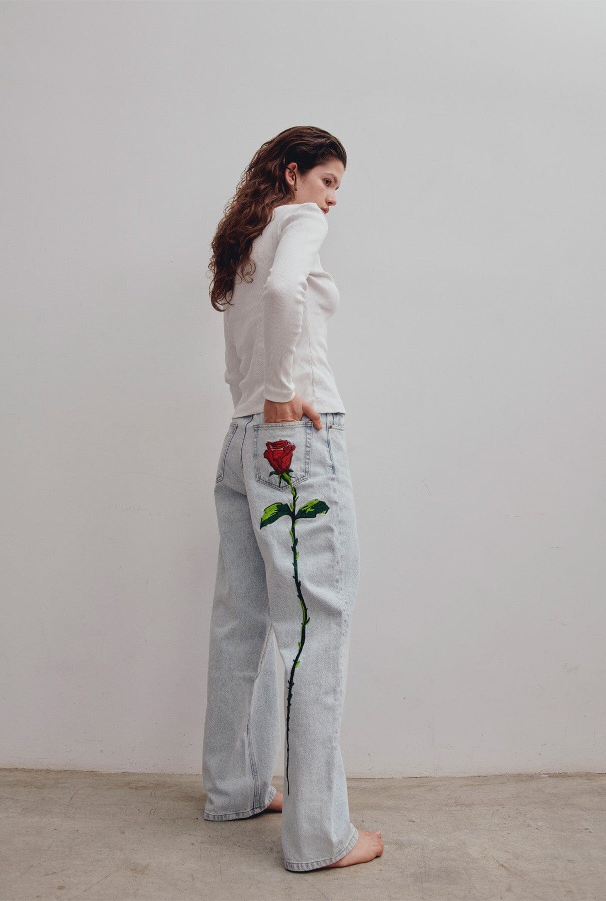 Vaqueros con bordado. Diseño de Ynesuelves.