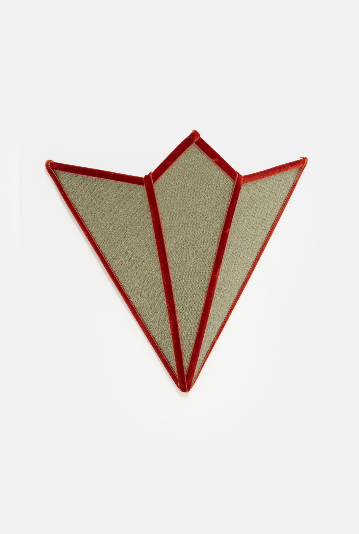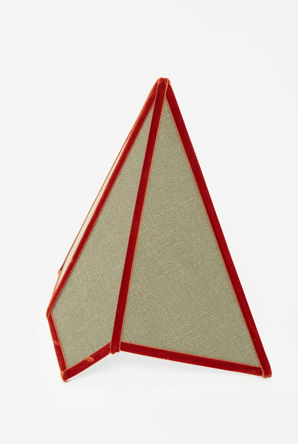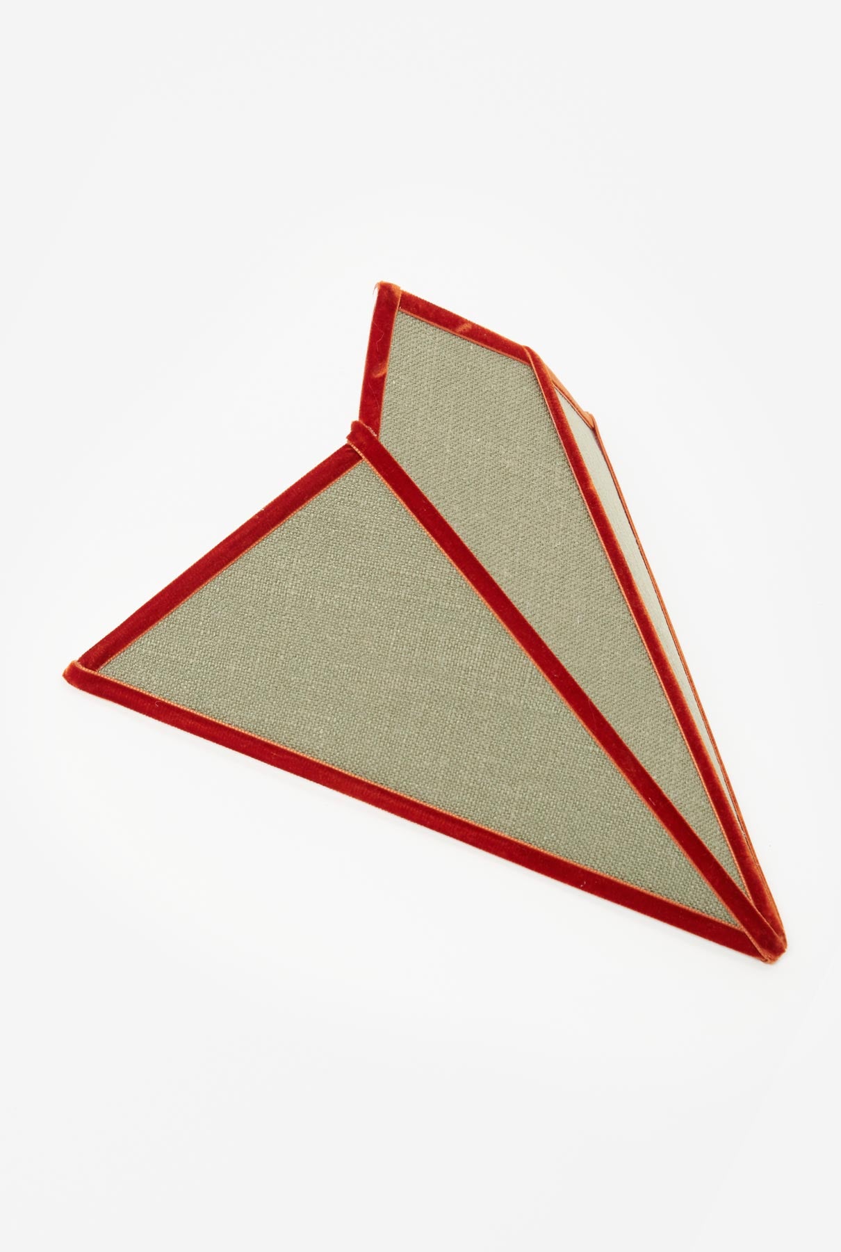 Lampshade in green linen with brickcolour velvet trim. Designed by Otherlamps.