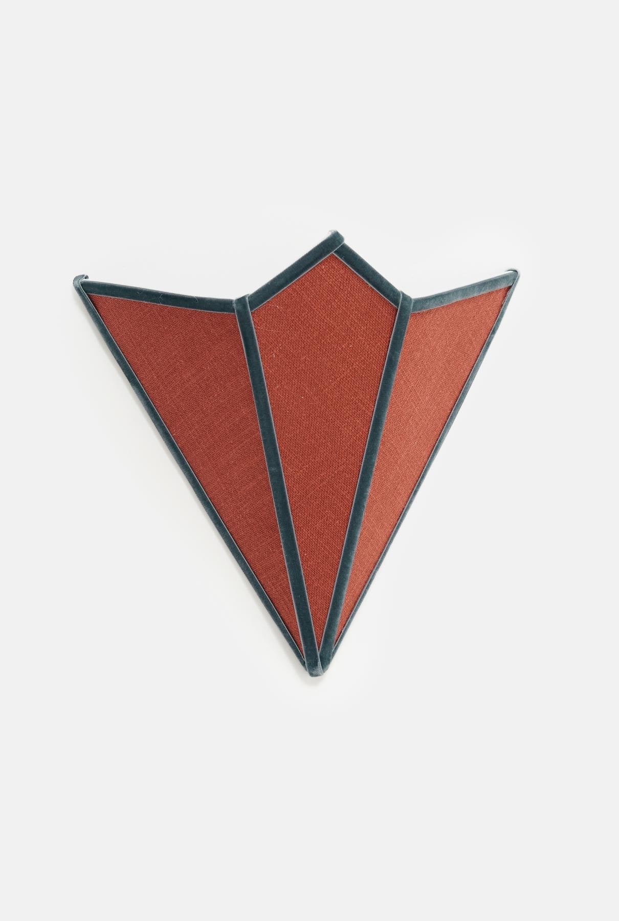 Lampshade in brick linen blue  velvet trim. Designed by Otherlamps.