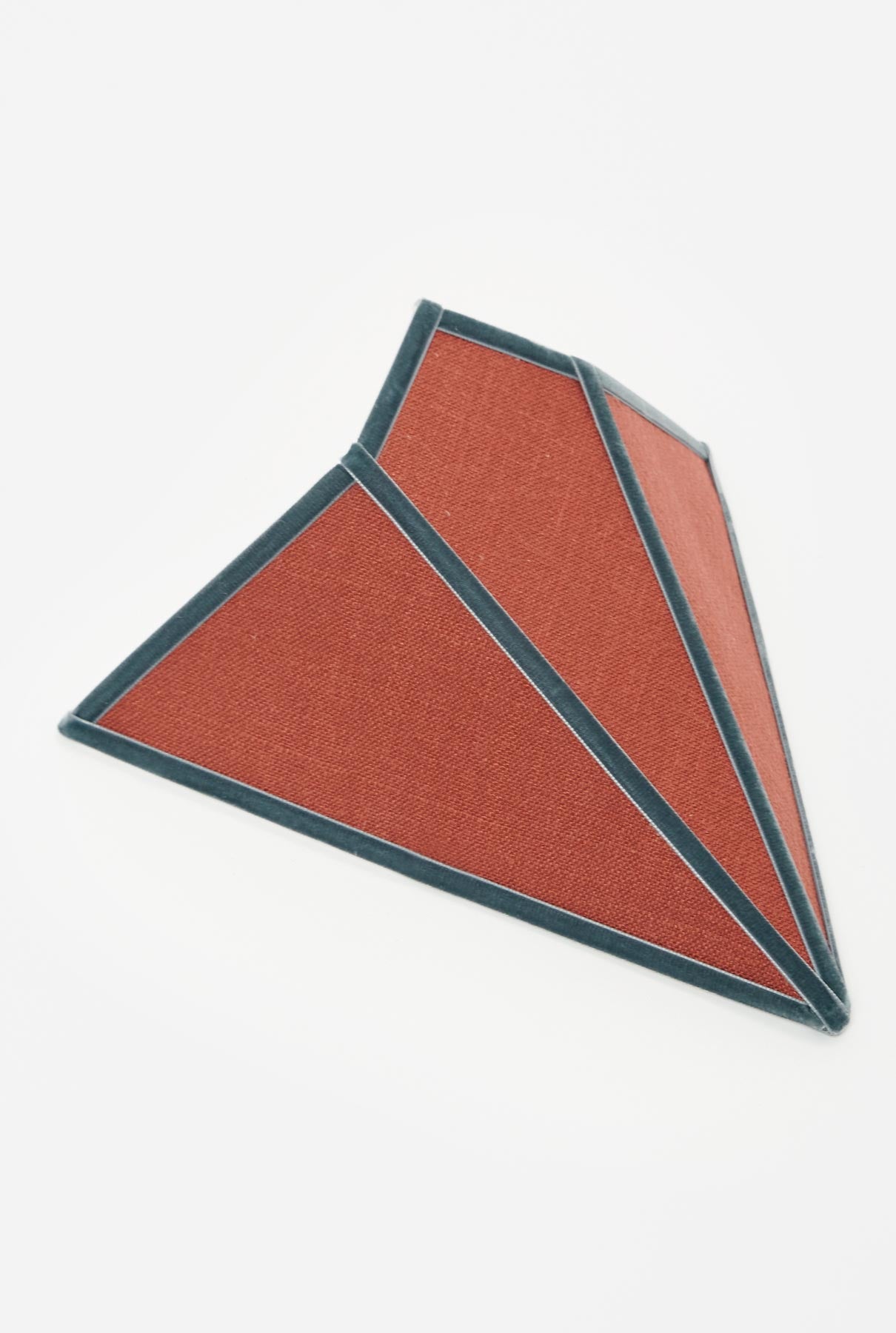 Lampshade in brick linen blue velvet trim. Designed by Otherlamps.