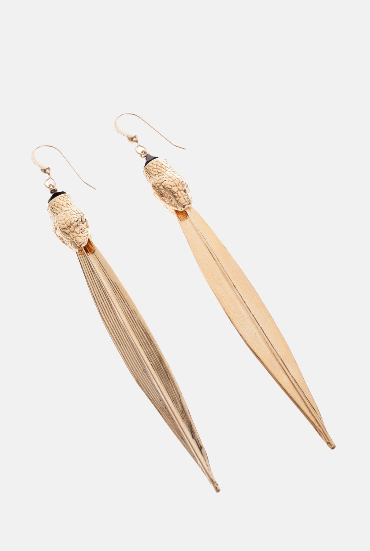 Large earrings whith Gold Filled hook, snake head and long leaf, all 18k gold plated.