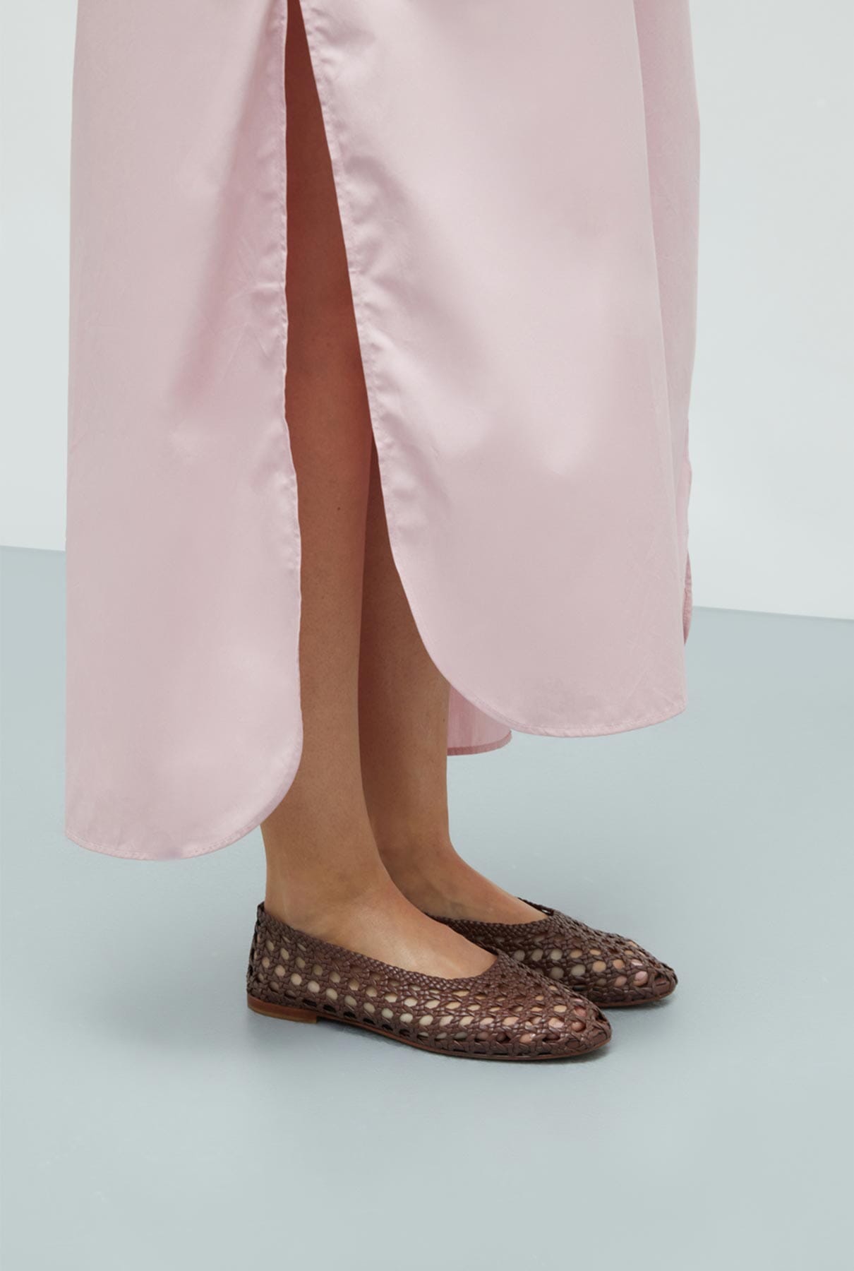 AVA BALLET FLATS IN CHOCOLATE WOVEN LEATHER