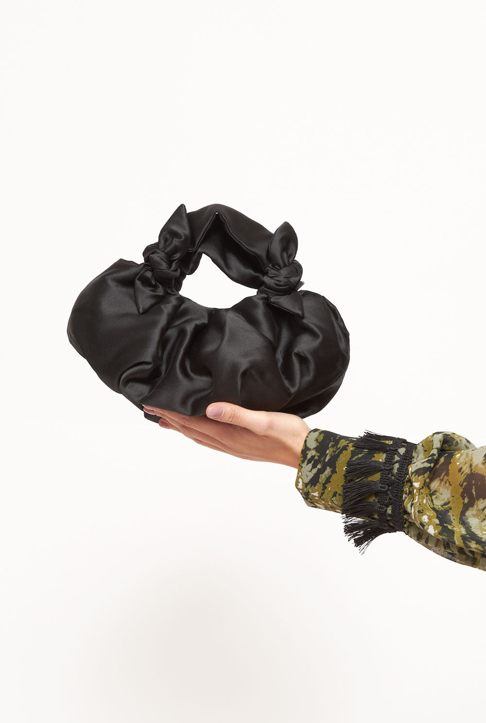 The Bernatta bag is crafted from lustruos and smooth silk-satin . It is a soft pochette with knoted handles and button closure.This bag is made in Spain with silk fabrics from the iconic Barcelona fabric supplier: Gratacós.