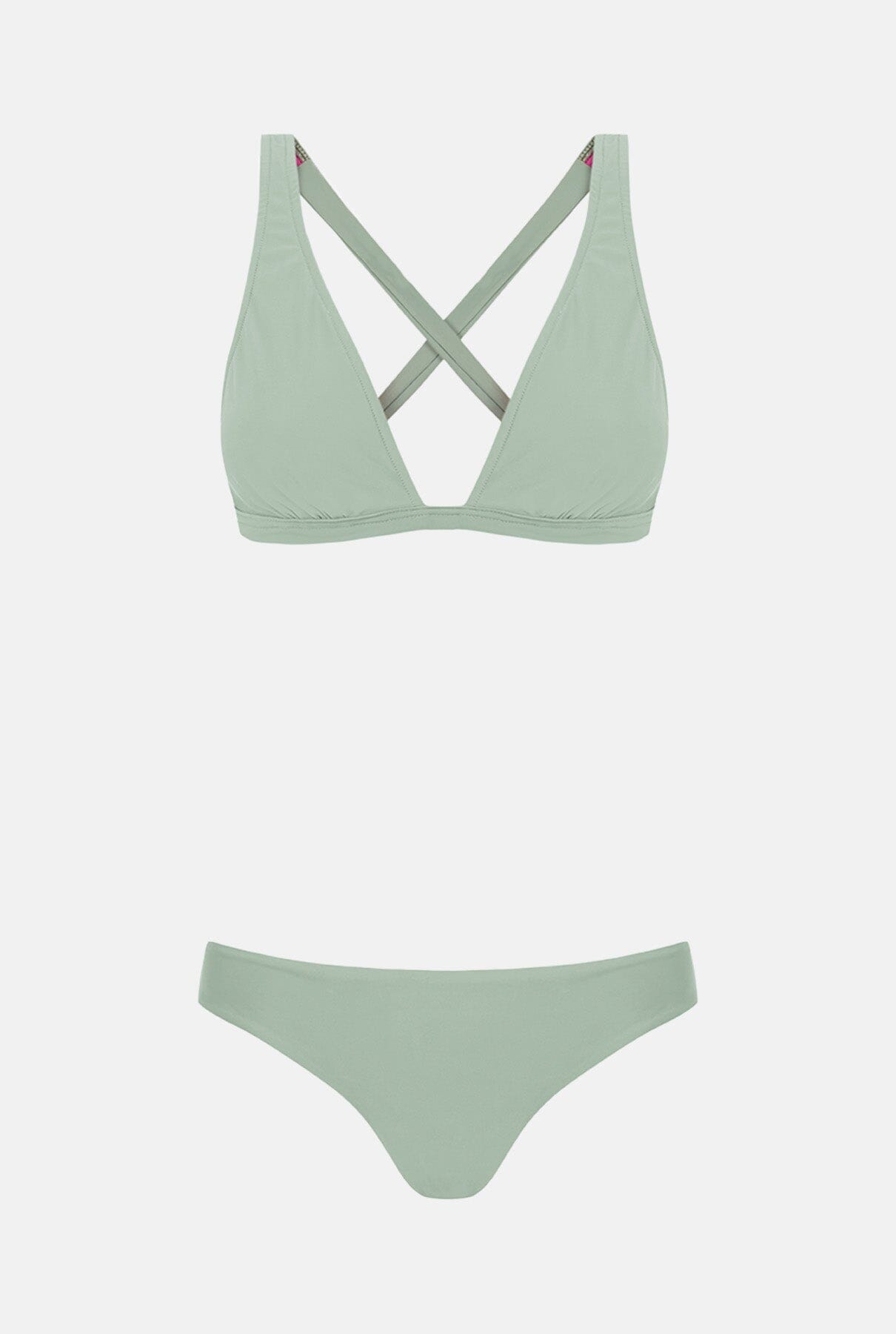 Perfect bikini top with a very flattering and feminine V-neckline. Features adjustable long cross over straps that can be knotted at the back or neckline. Designed for a good level of support and offers great comfort of movement. Lined with a beautiful silky touch fabric that incorporates removable cups.