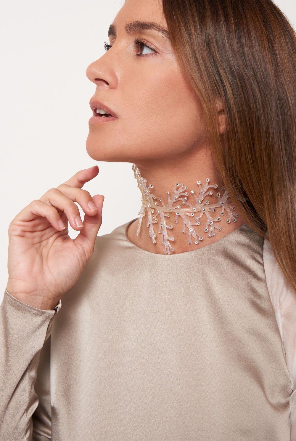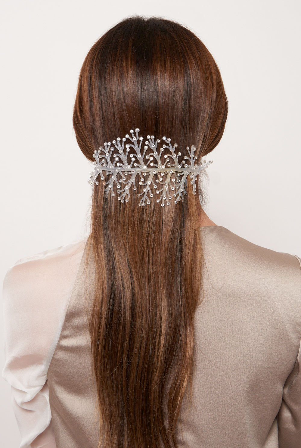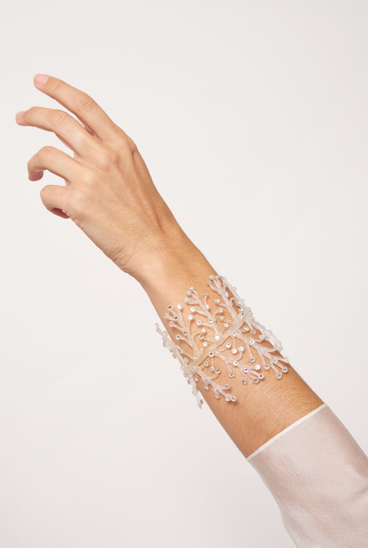 Very versatile piece. Can be combined in different positions: choker, bracelet, hair accessory or brooch. Designed by Joaquín Blanco