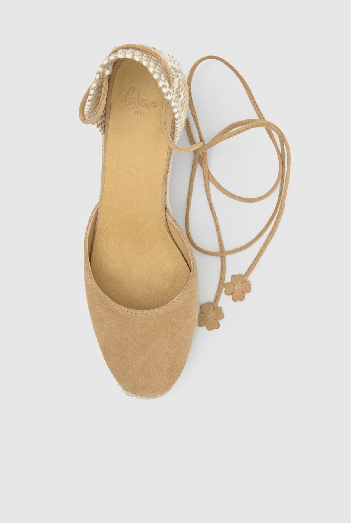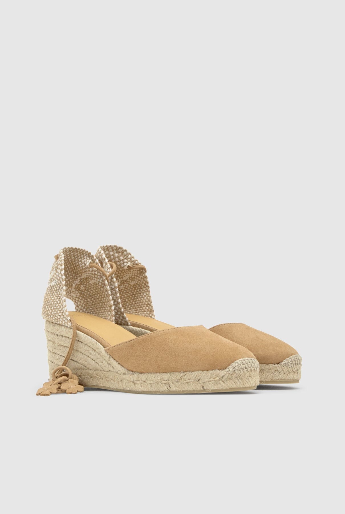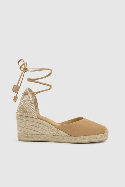 Carina, our iconic espadrilles, return as every season to become a timeless essential in your closet. Made in Spain in suede, the Carina espadrilles feature rounded closed toe, lace-up closure, 7cm heel and vulcanized rubber sole.