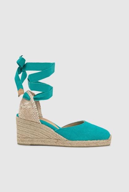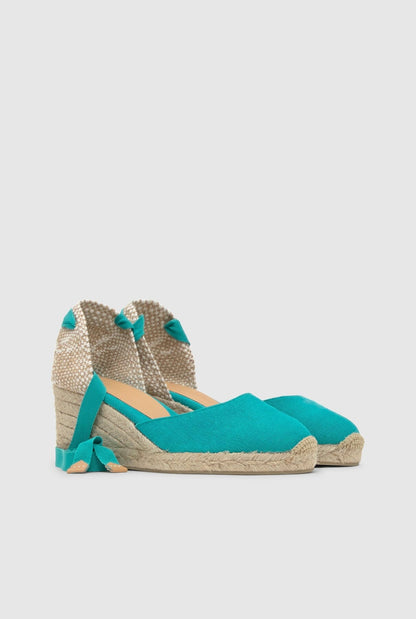 Carina, our iconic espadrilles, return as they do every season to become a timeless wardrobe essential. Crafted in Spain from certified organic cotton with a sustainable washed finish, the Carina espadrilles feature a rounded closed toe, lace-up fastening, 7cm wedge and vulcanised rubber sole.