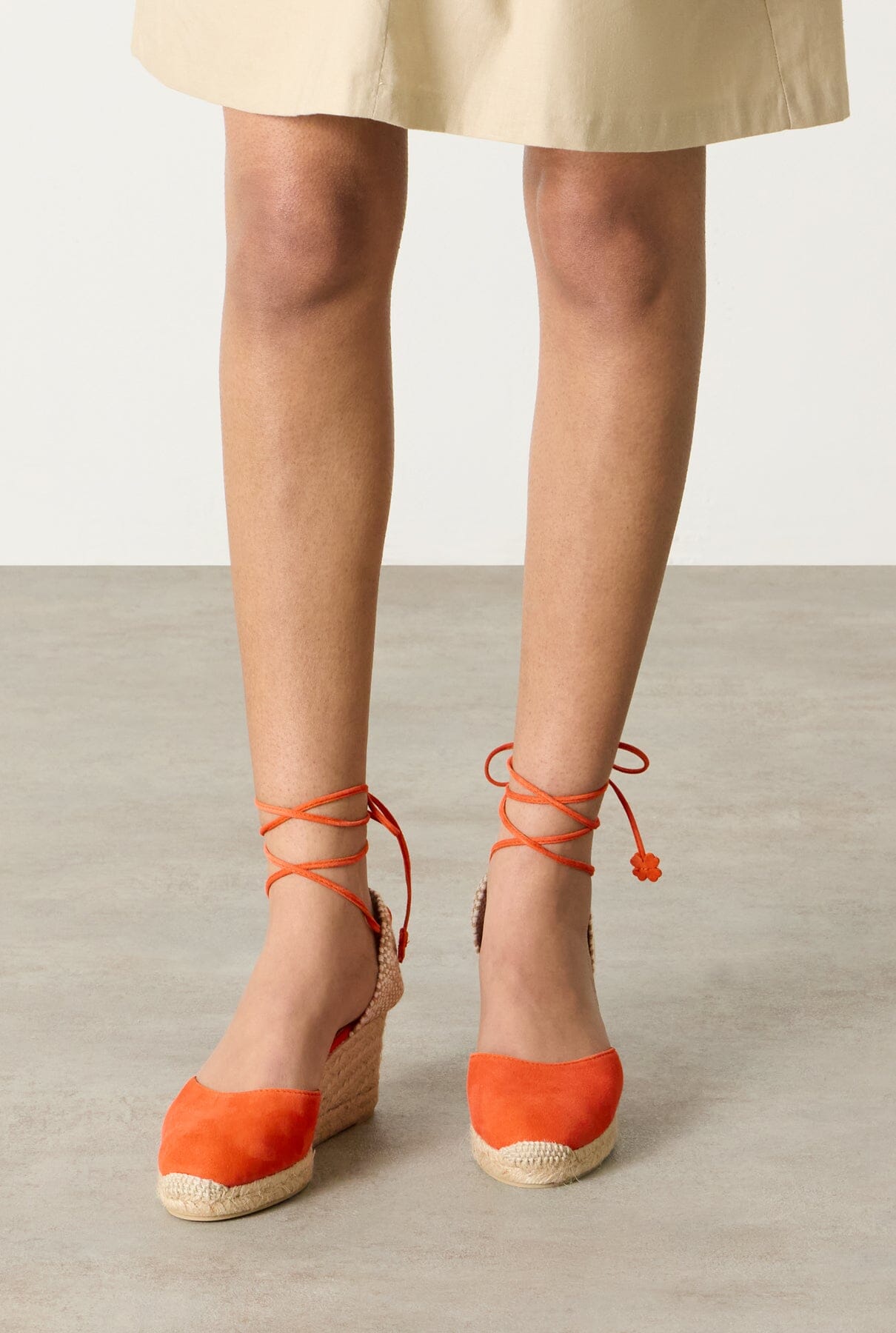 Carina, our iconic espadrilles, return as every season to become a timeless essential in your closet. Made in Spain in suede, the Carina espadrilles feature rounded closed toe, lace-up closure, 7cm heel and vulcanized rubber sole.