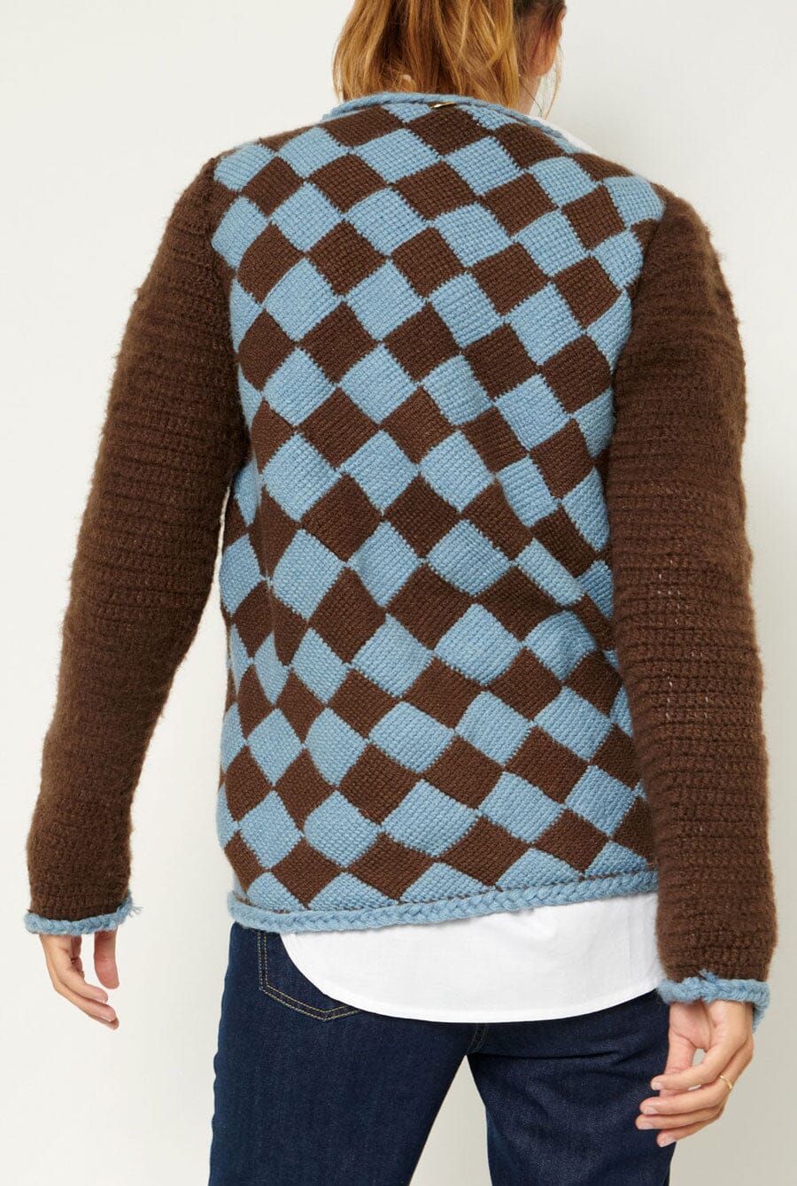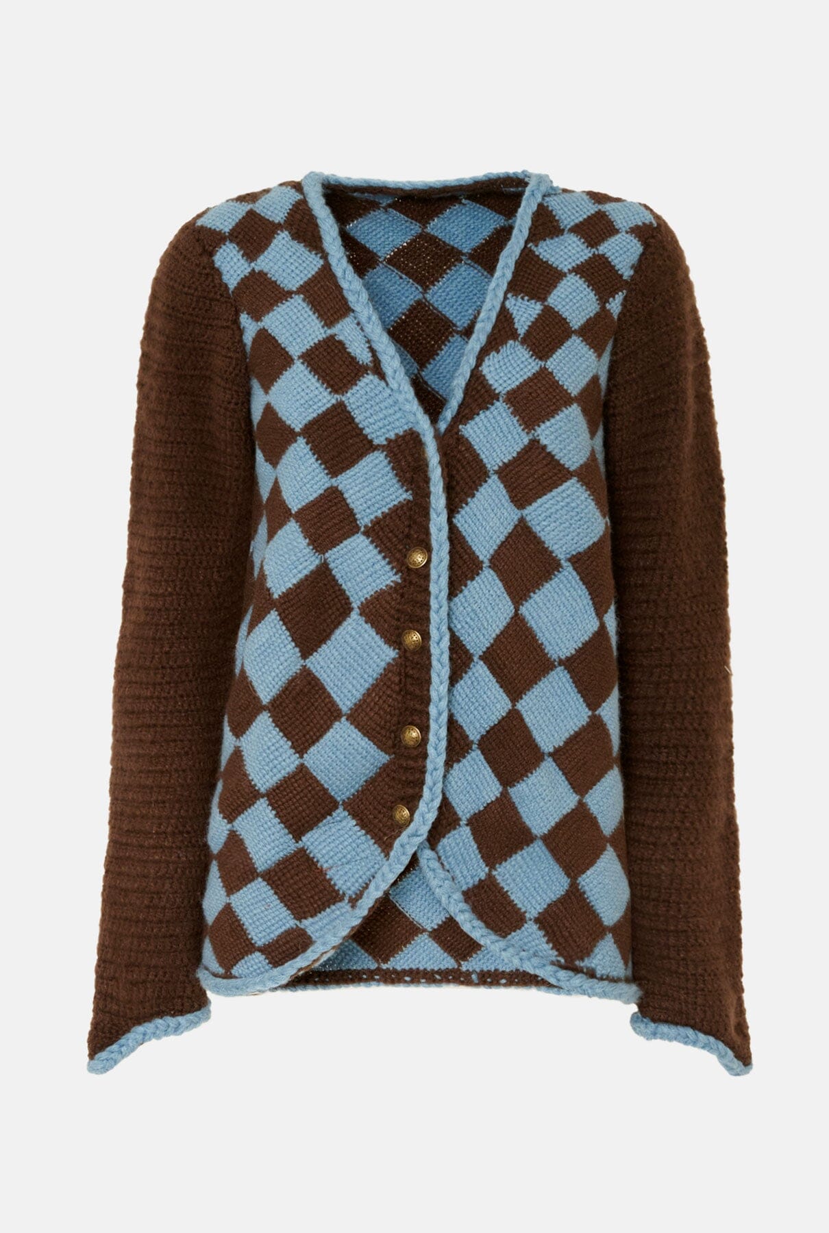 Cardigan hand-knitted in crochet stitch with crochet needle, 100% Alpaca yarn with antique Spanish style metal buttons.