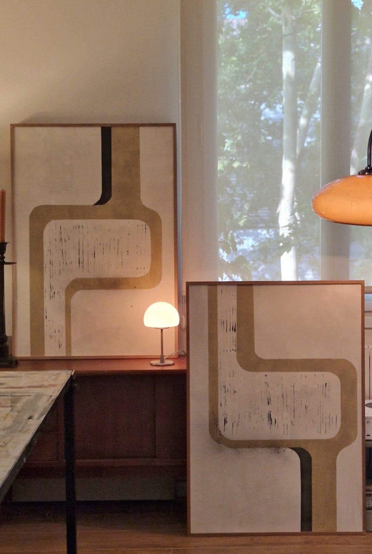 Mixed media on paper with oak frame and acrylic glass.Wood color may be slightly differentFITTING