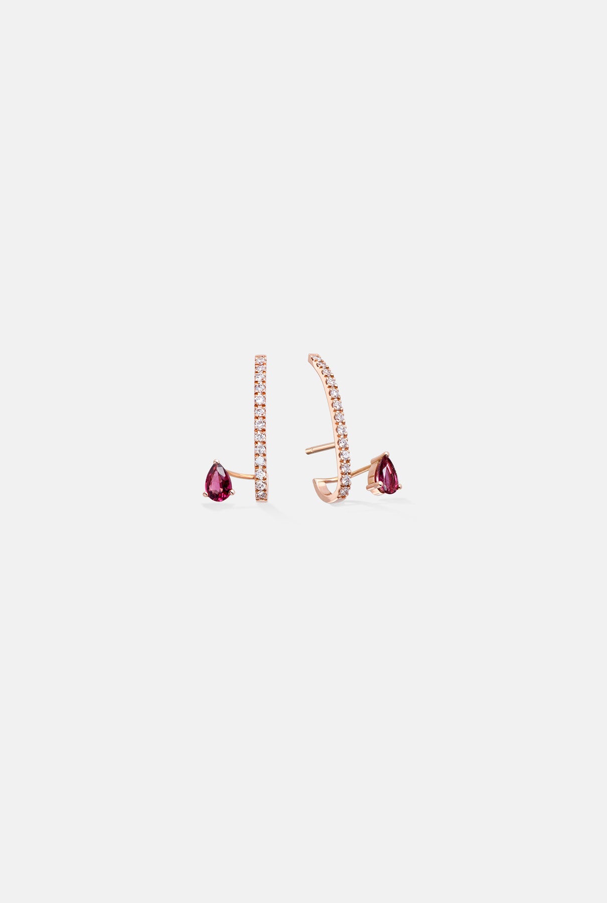 18kt rose gold earrings with diamonds (0,40 ct) and rubelites (0,80 ct). Designed by Gold&Roses.