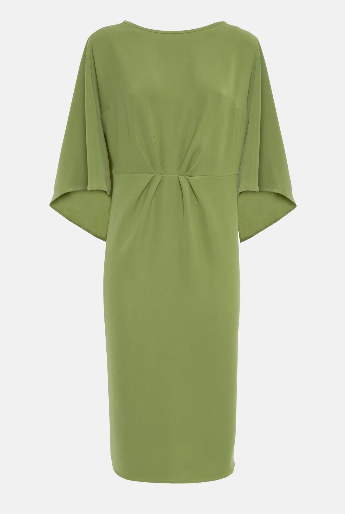 Crep dress whit double fold in front and cape sleeve. Designed by Ulises Mérida.