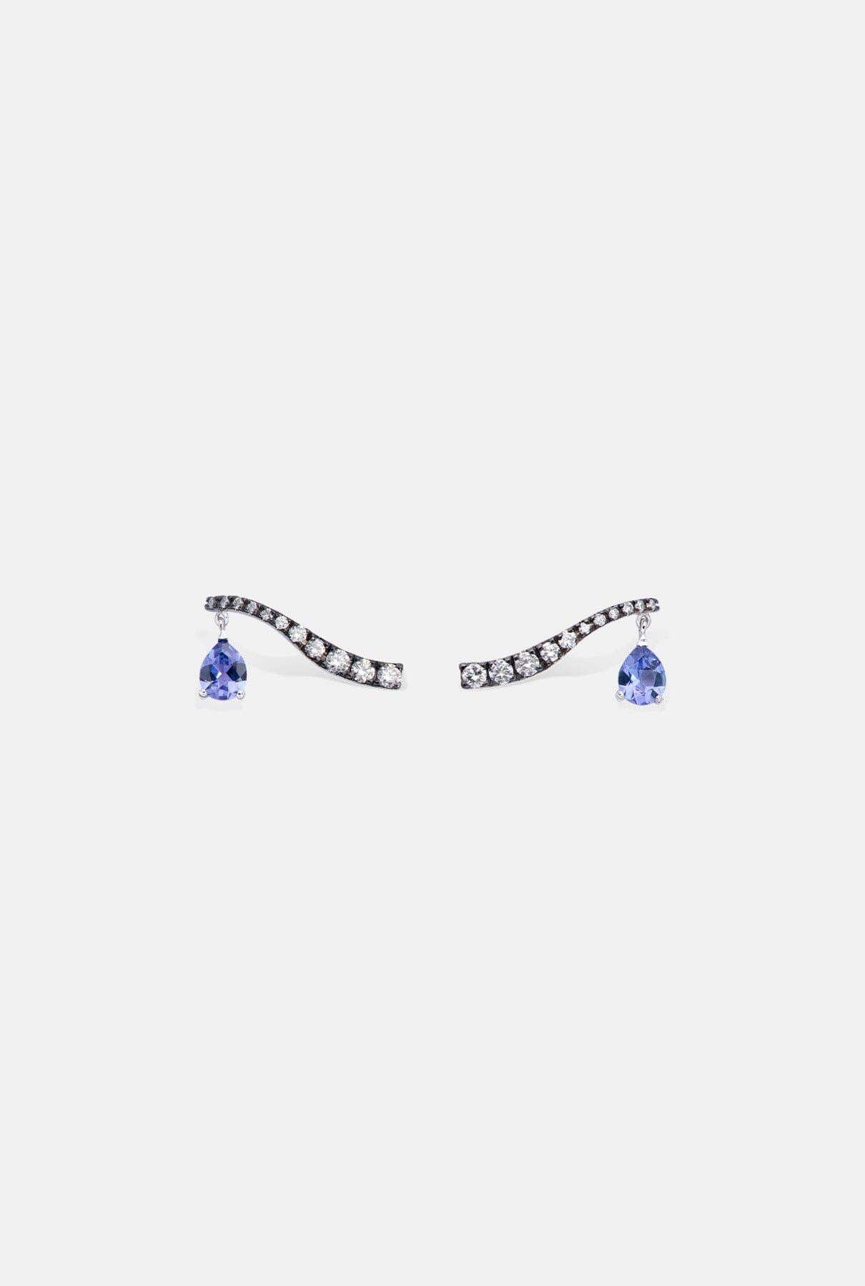 Black rhodium-plated 18kt white gold earrings with diamonds (0,32 ct) and tanzanites (0,60 ct).