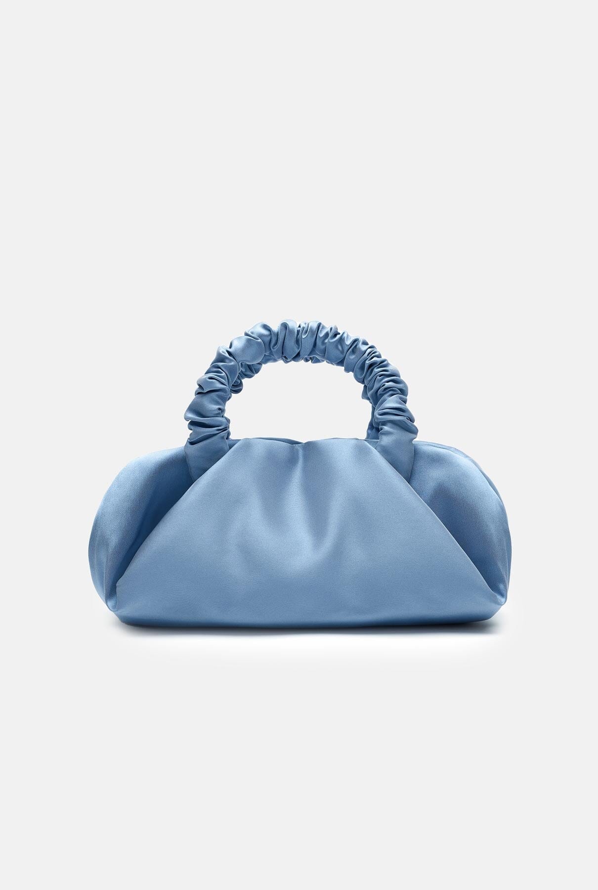 Crafted from luxurious and smooth silk-satin, the Sita Bag is a soft pochette with ruffle handles and a button closure.