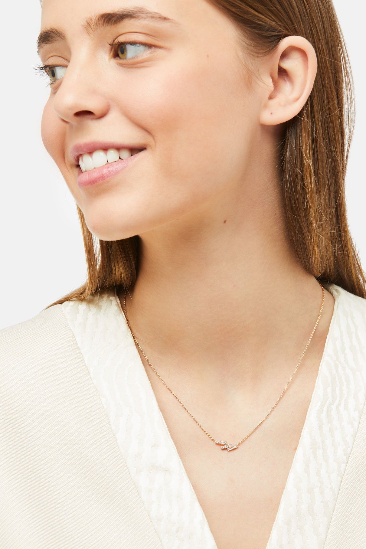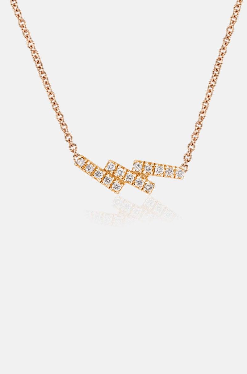 The Skyline collection, inspired by the New York of the 20s, reflects in this necklace of 18 kt pink gold and white diamonds of 0.15 cts the skyline of the big city, which reaches height with its design and remembers the lights of the time for its beautiful brightness. Designed by Gold & Roses