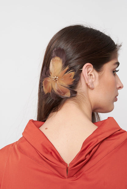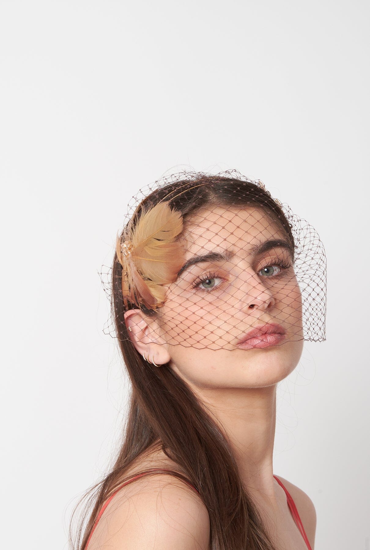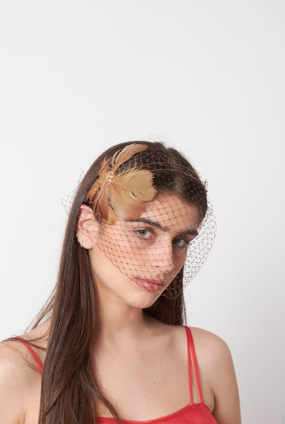 TOCADO MARIPOSA CON PLUMAS MARRON