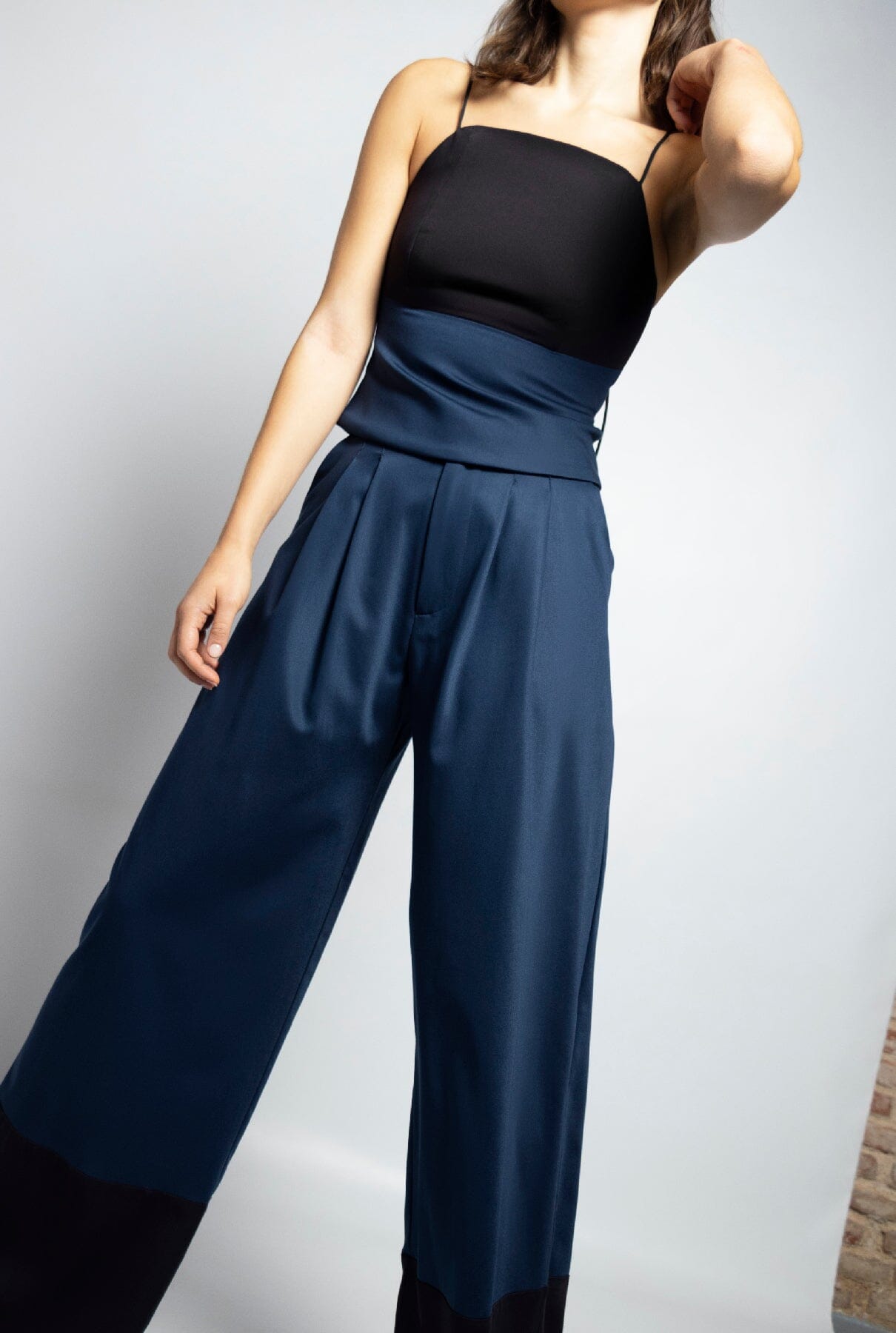 Two-tone bustier with an underbust cut. The neckline is slightly raised and the skirt is slightly flared. Can be worn with or without straps.