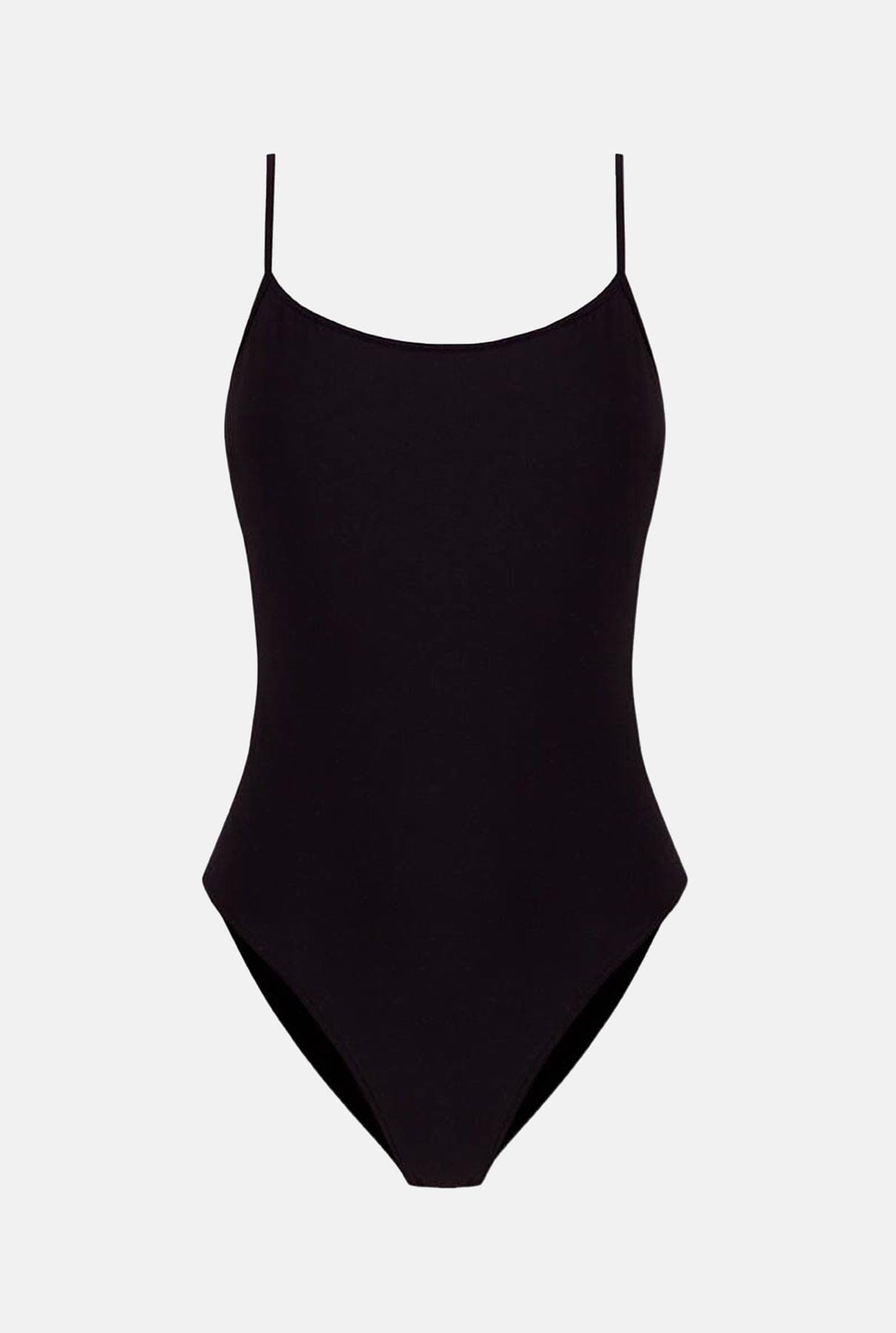 The Bahia swimsuit in black enhances the figure with subtle and elegant lines. Its straight neckline and thin straps slim the silhouette, while the flower-shaped open back adds a distinctive and unique touch. Lined inside and with removable foams, this swimsuit offers comfort, adaptability and a flattering fit for all bust types. A versatile and sophisticated piece that you can also wear at night as a bodysuit by combining it with a midi skirt or palazzo pants and take it beyond the sea.