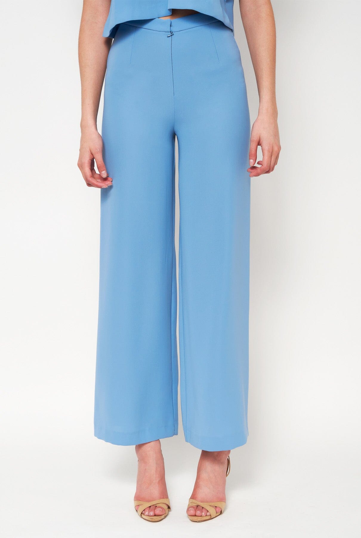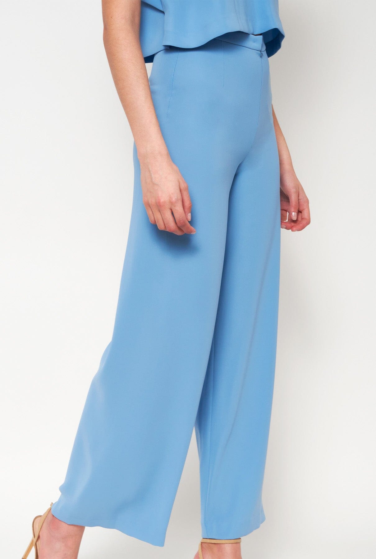 Pantalón ancho, cierre con cremallera y botón en la parte delantera.