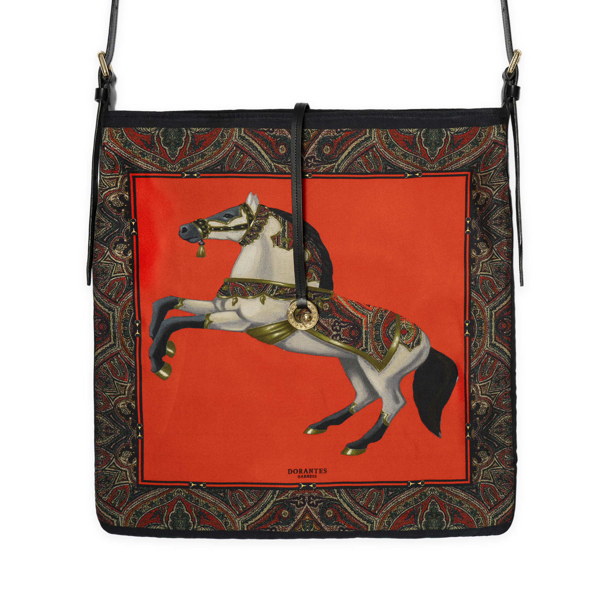 Inspirado en los lujosos interiores forrados de seda de los carruajes Berlina vintage, este exquisito bolso bandolera transforma el arte ecuestre pintado a mano en un accesorio atemporal. Elaborado con sedas teñidas naturalmente y piel de vaca curtida vegetalmente, fusiona la tradición artística centenaria con la funcionalidad moderna. Un aplique de cuero tallado a mano asegura con elegancia el cierre de la solapa, mientras que el espacioso interior está forrado con algodón orgánico para mayor practicidad. Incluye una correa extraíble y ajustable para llevarlo al hombro o cruzado. Totalmente elaborado a mano en nuestro taller de Lebrija, Sevilla.