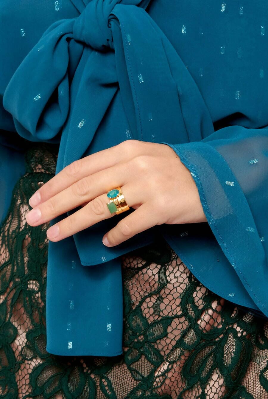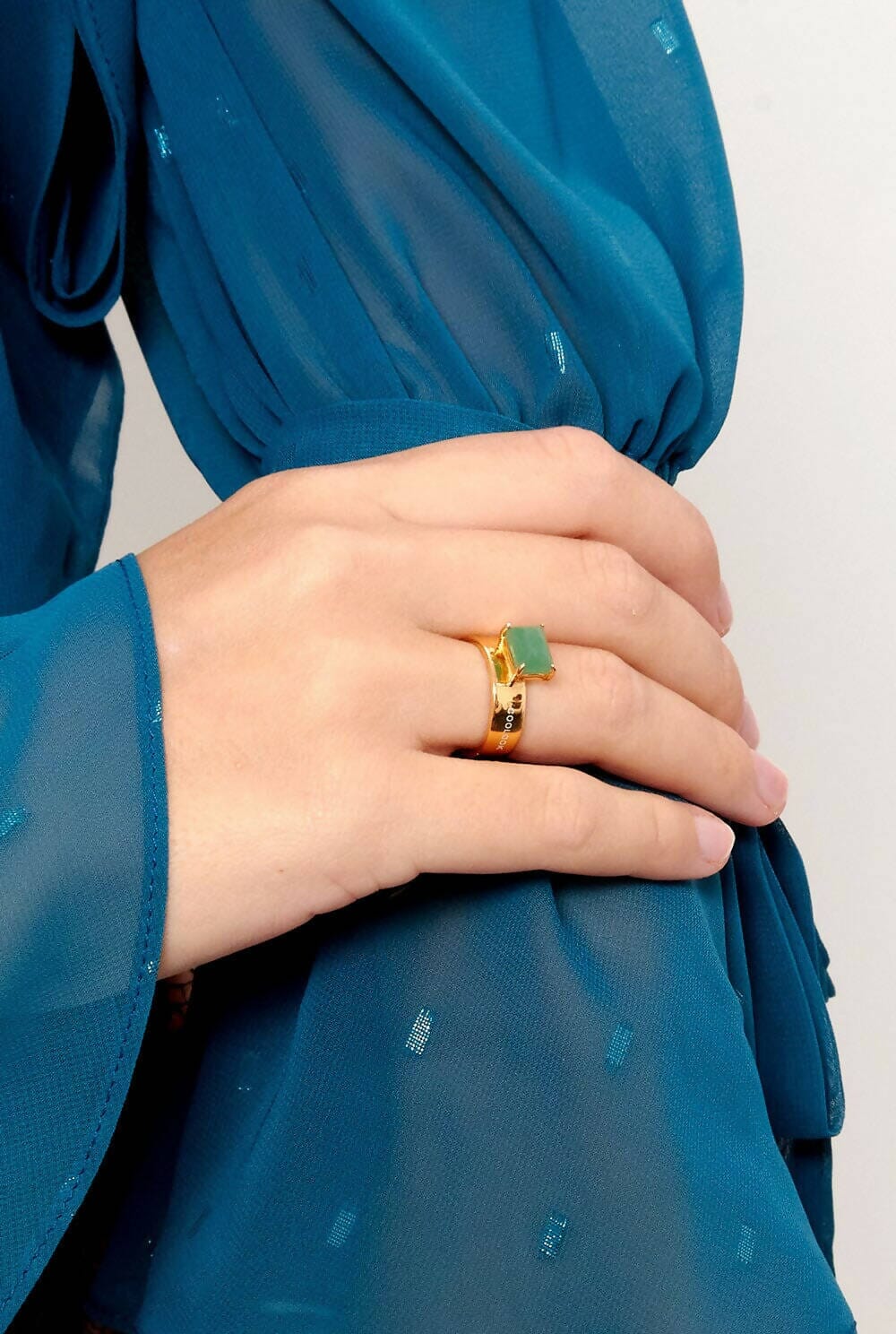 100% tropical, así es el anillo de aventurina Gabo. El anillo perfecto para los nacidos en junio y los amantes de las plantas que buscan regenerarse en esta estación del año.