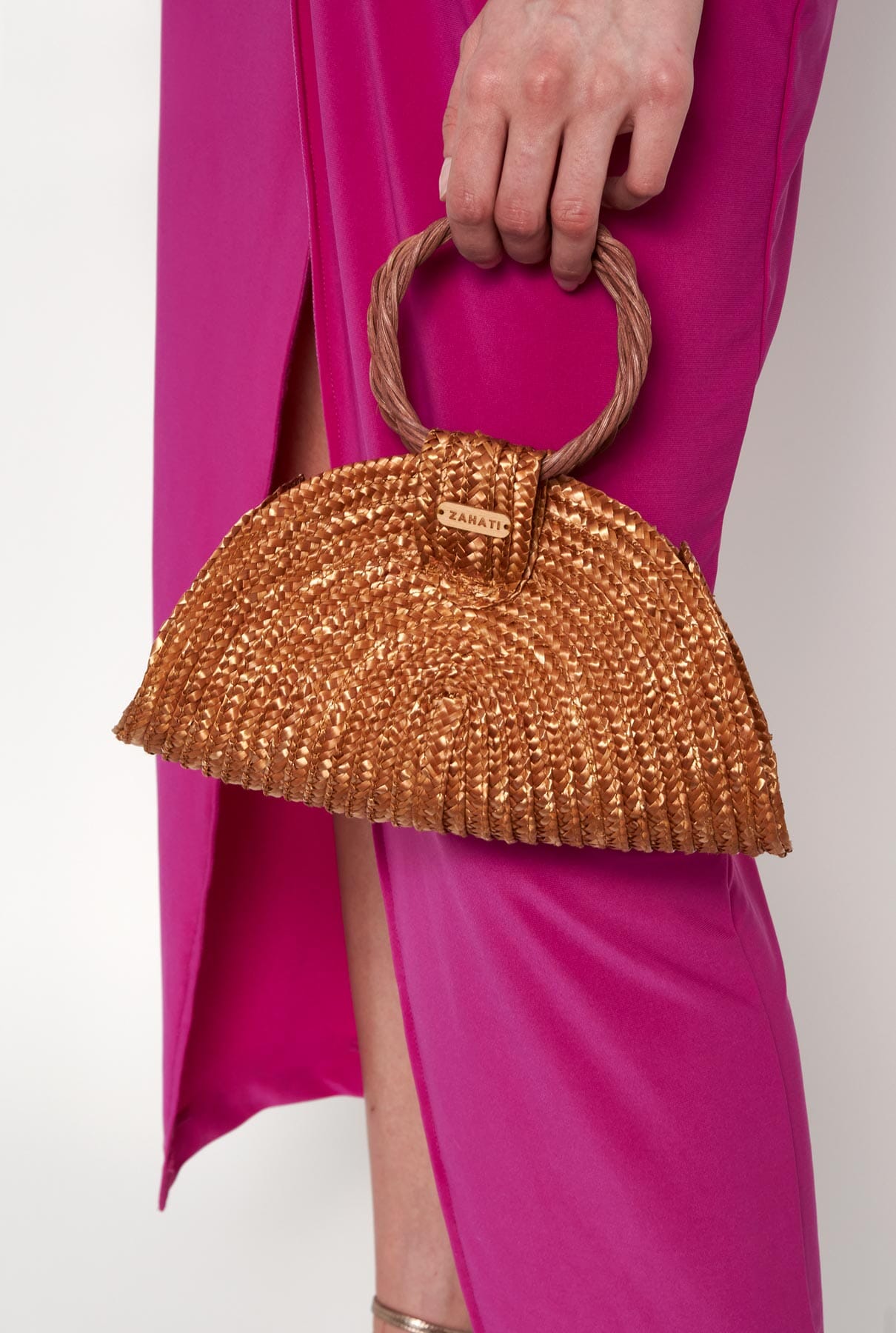 El bolso lunar está hecho de paja de trigo en color camel. Un bolso pequeño, cómodo y versátil. Se adapta a todo lo que necesitas. Ideal para uso diario o para un evento. Cierre magnético y cordón para colgar