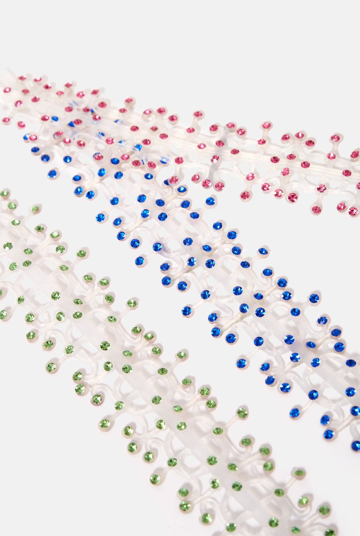 Pieza muy polivalente. Se puede combinar en diferentes posiciones: gargantilla, pulsera, accesorio para el pelo.