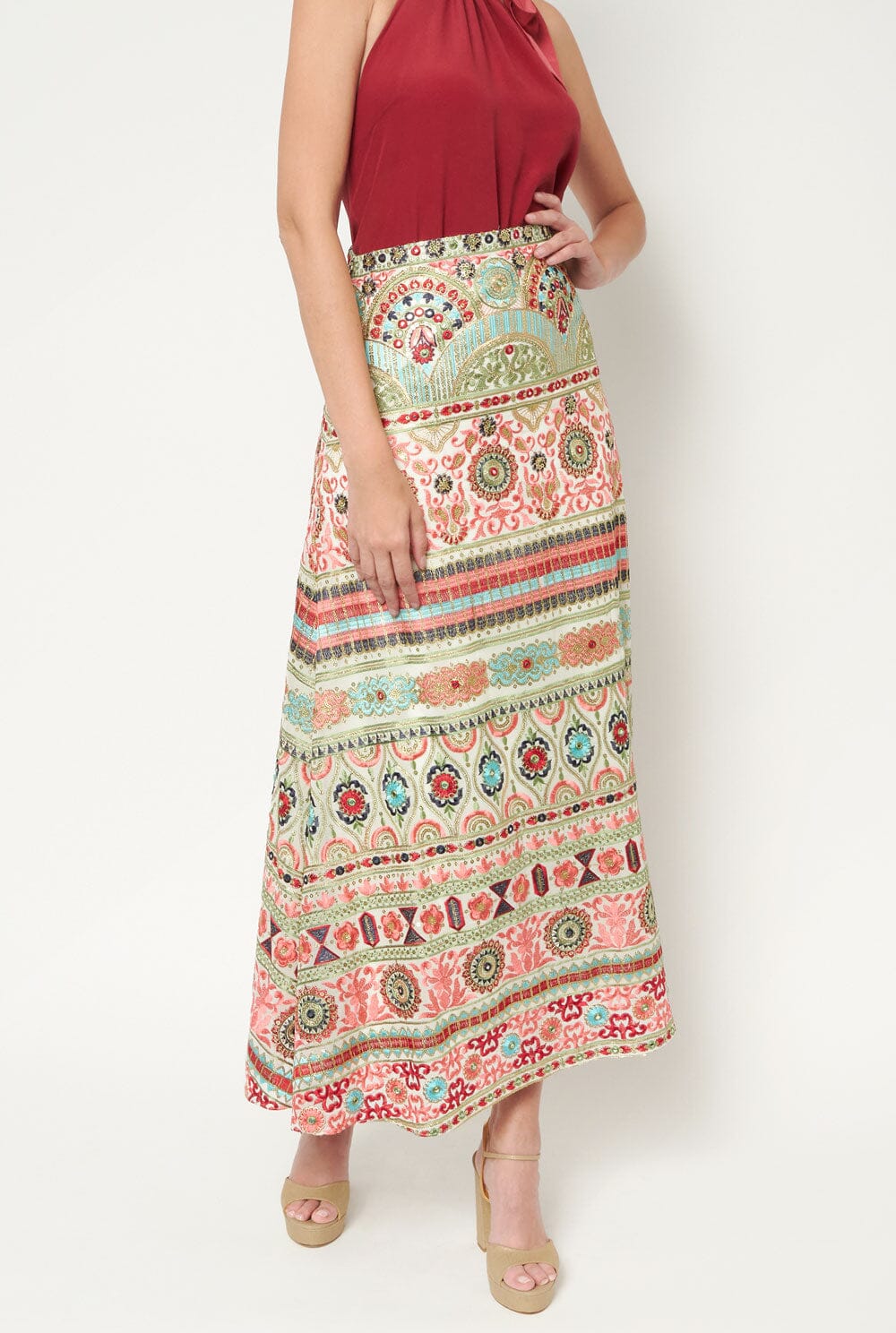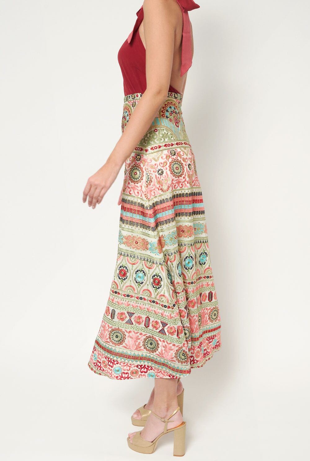 Esta falda joya de LD está confeccionada en georgette bordado con flores y motivos geométricos que no te dejarán indiferente. Diseño de cintura alta con cierre de cremallera invisible en la espalda.Forrado. Sólo limpieza en seco