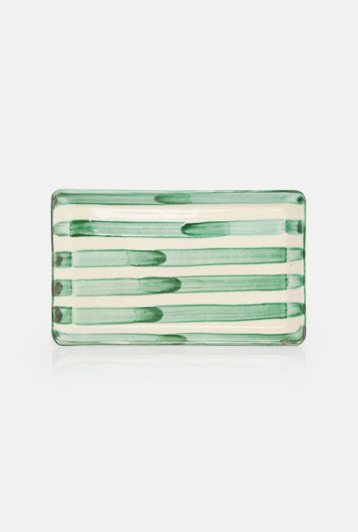 1 bandeja de cerámica de la colección rayas verdes. Totalmente hechos a mano, por lo que son únicos, no hay dos iguales y pueden tener algunas irregularidades que los hacen aún más especiales.