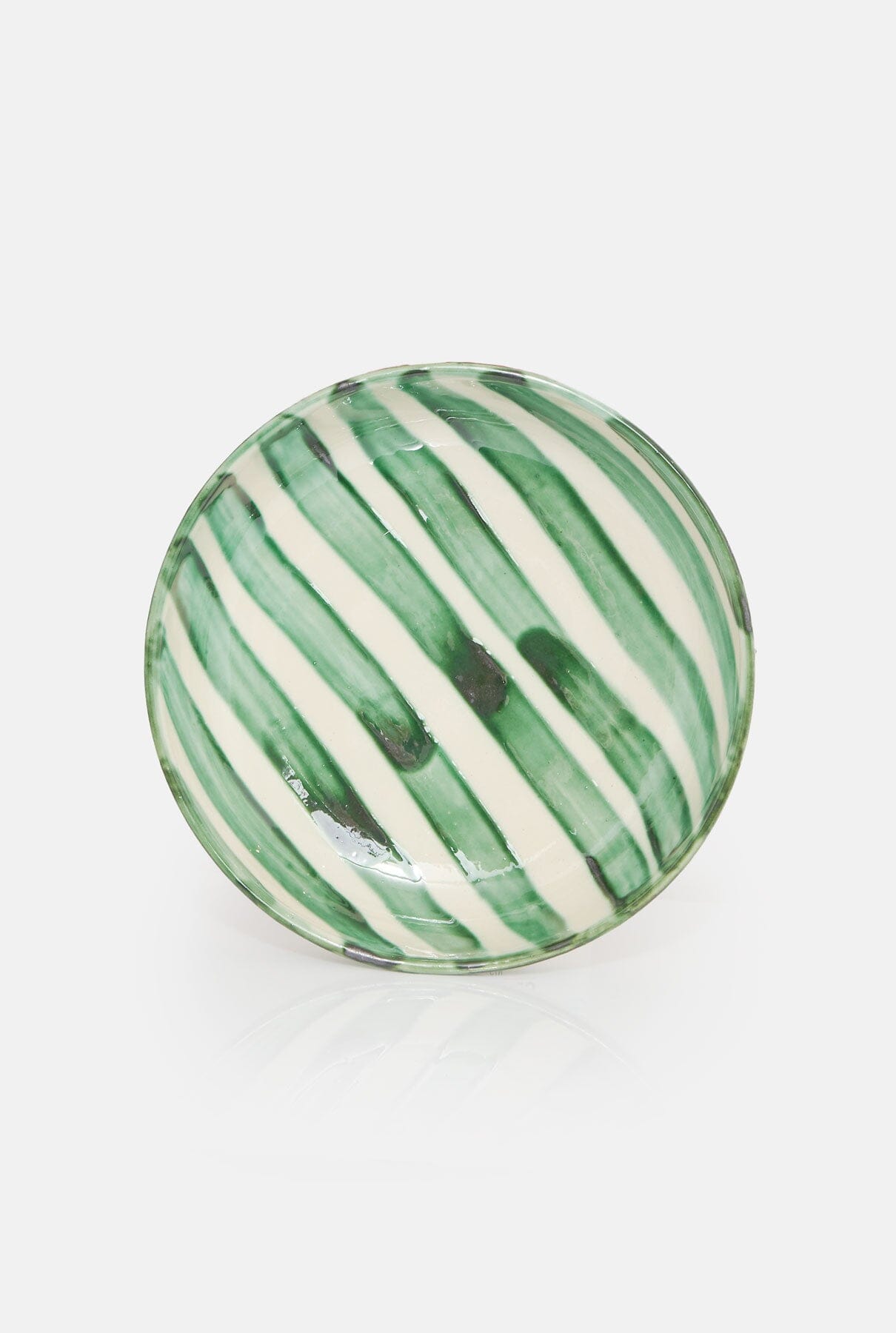 1 ensaladera de cerámica de la colección rayas verdes. Totalmente hechos a mano, por lo que son únicos, no hay dos iguales y pueden tener algunas irregularidades que los hacen aún más especiales.