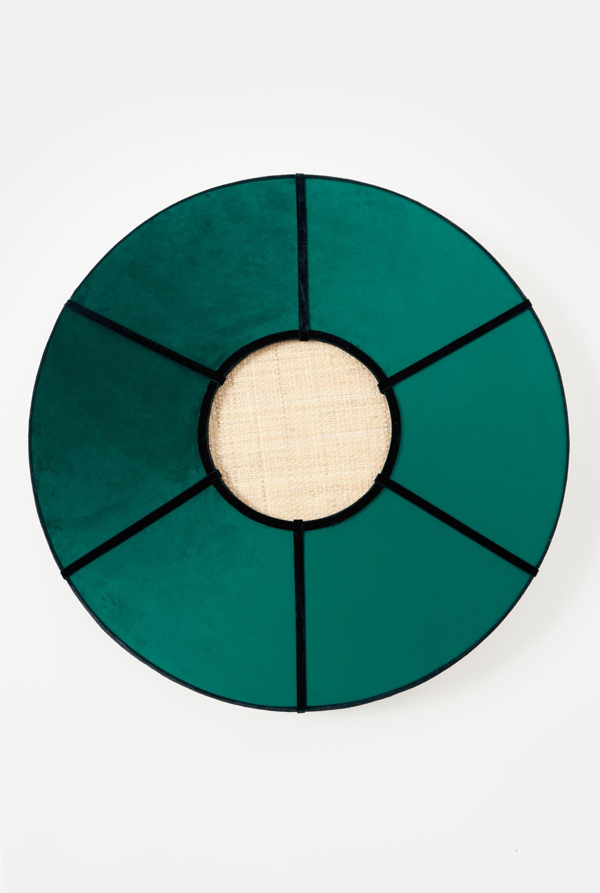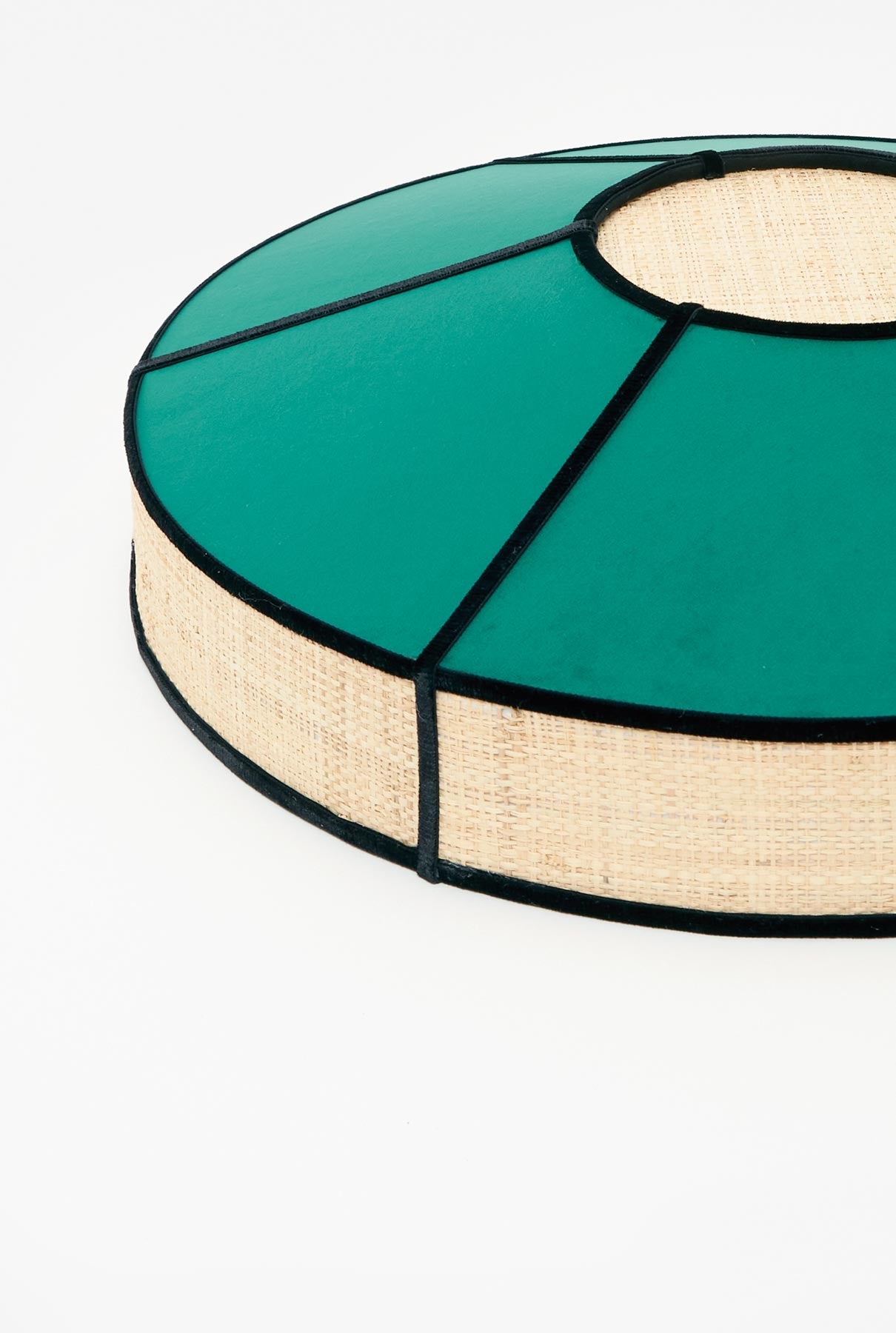 Pantalla en terciopelo verde con flecos de seda. Diseñado por Otherlamps.