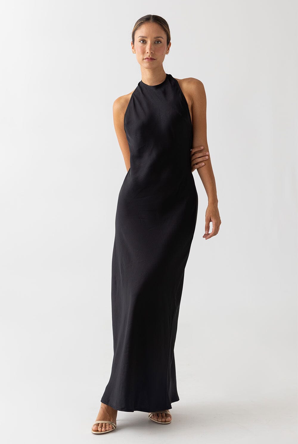 Villã Concept presenta un vestido de cuello halter con efecto satinado confeccionado en tejido 100% viscosa. Con un diseño que fusiona sencillez y elegancia manteniendo siempre un estilo sofisticado. Este vestido te transportará a tu mejor versión con sus líneas puras y suaves.