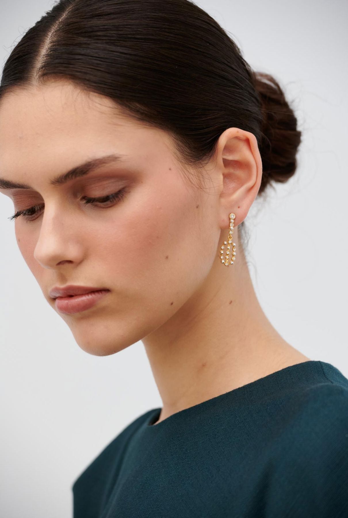 Plata bañada en oro de 18 kilates. Decorada con cristales de alta calidad de origen europeo.