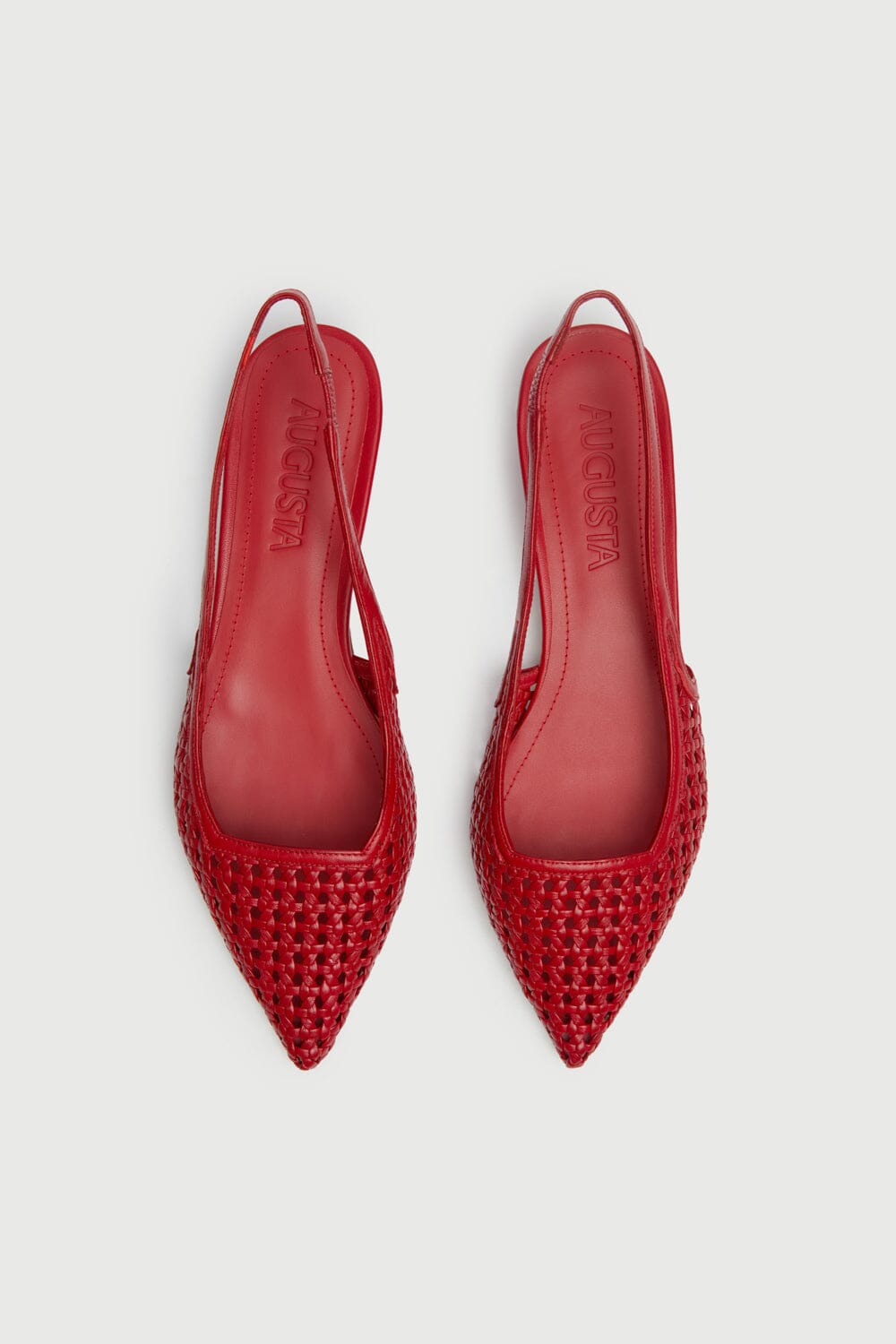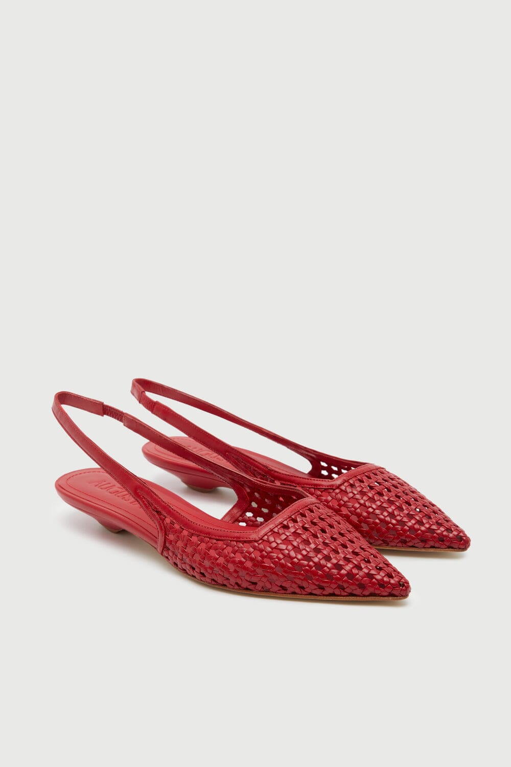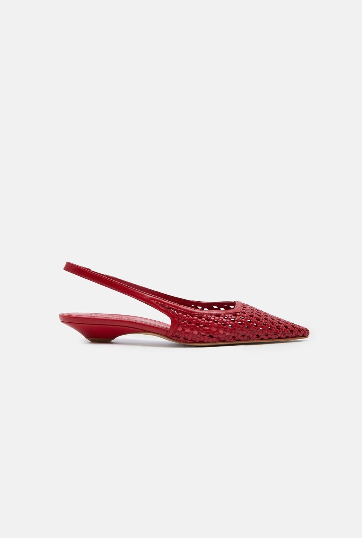 Atrae todas las miradas con estos zapatos de tacón destalonados en piel roja trenzada: un calzado llamativo que derrocha confianza y elegancia. Elaborados con piel tejida a mano, estos zapatos de punta afilada combinan la artesanía tradicional con la sofisticación moderna. El color rojo intenso añade un toque audaz a cualquier atuendo, mientras que el tacón bajo ofrece una comodidad sin esfuerzo.
