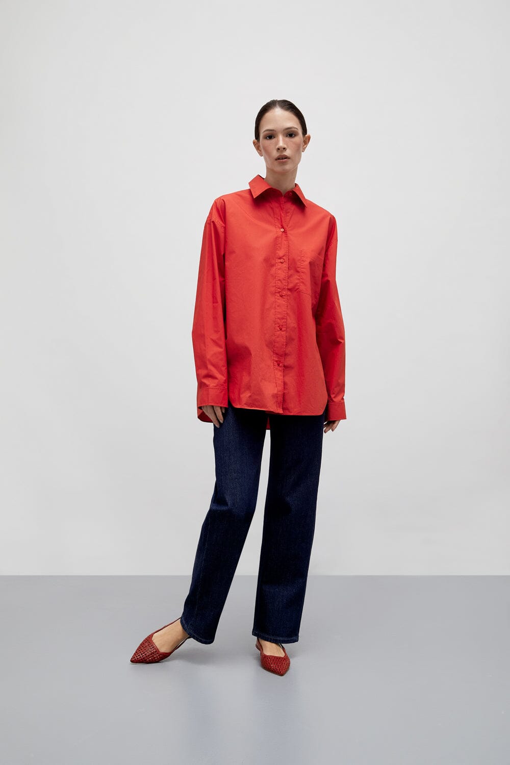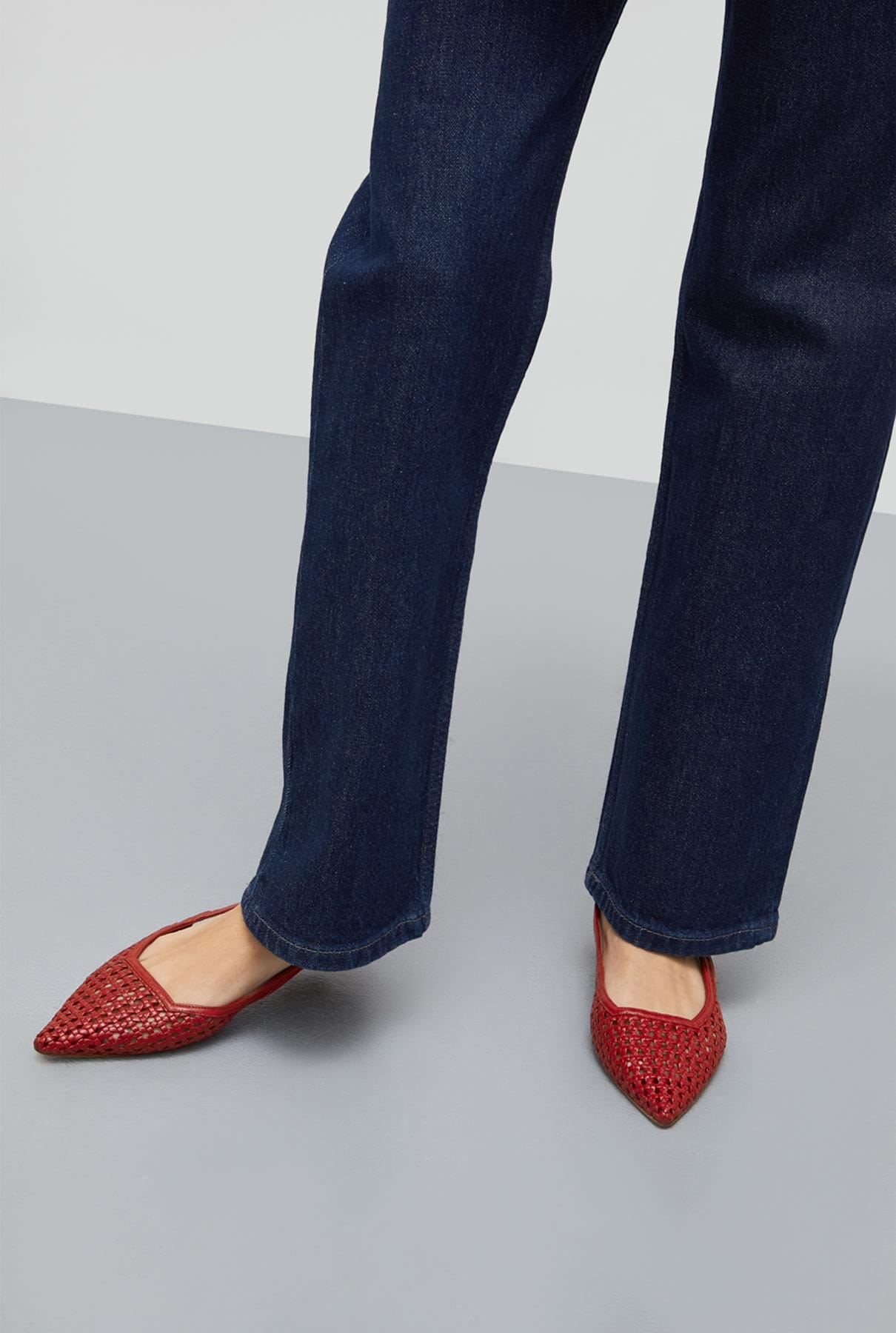 ZAPATOS PLANOS DESTALONADOS HARPER DE PIEL TRENZADA ROJA.