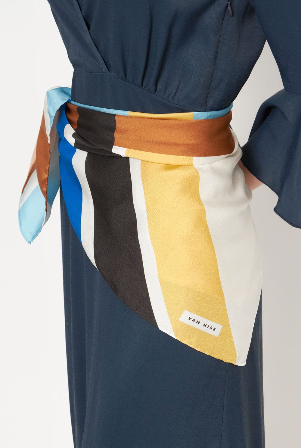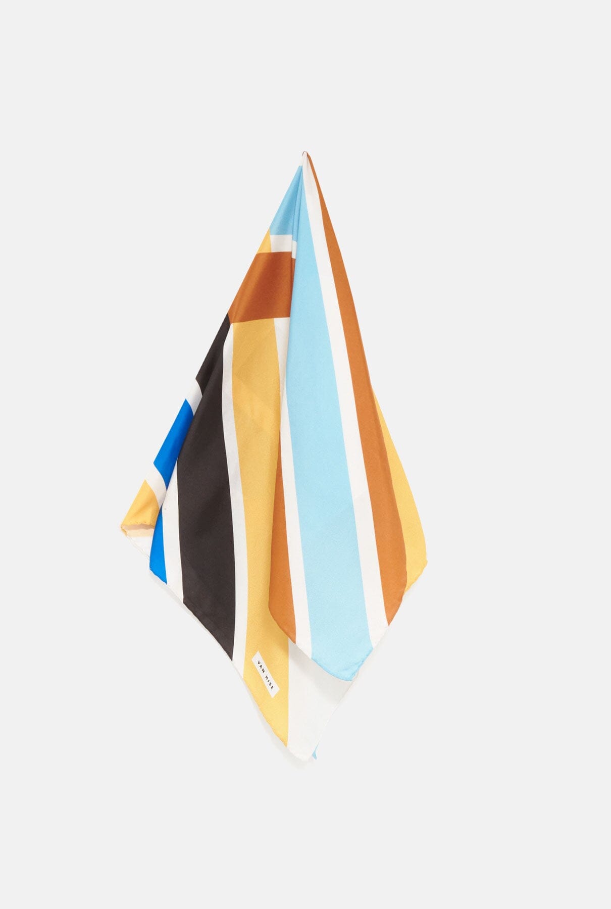 Edición limitada diseñada por Carrie Van Hise. Pañuelo de seda cuadrado de gran tamaño estampado con un diseño de tejido gráfico inspirado en el espíritu de Ibiza y el glamour del Studio 54 de Nueva York. El pañuelo de Ibiza se puede usar alrededor del cuello, como un pañuelo en la cabeza o con un cinturón de un vestido o jeans para un look informal. .