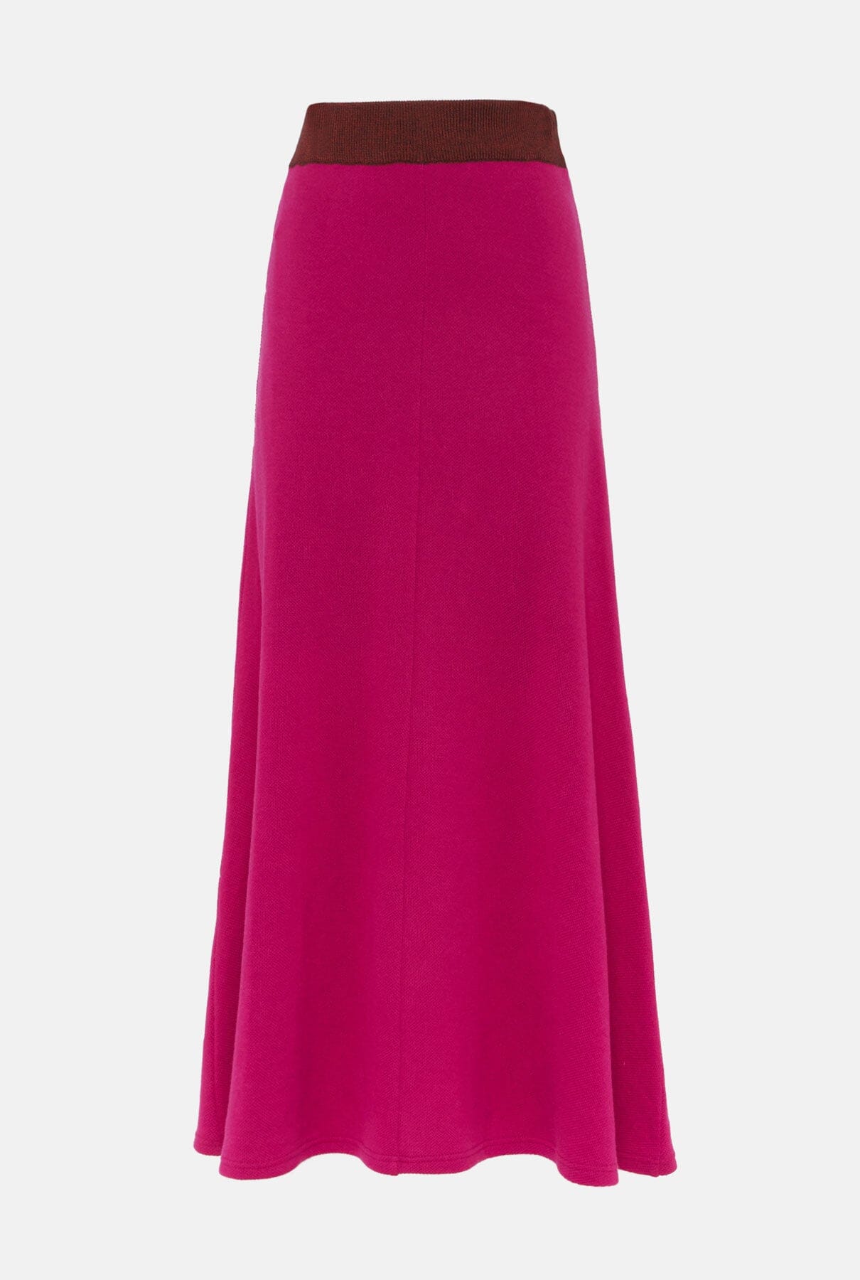 Está confeccionada en un fino tejido de piqué elástico de lana y cachemira de fabricación propia. Esta pieza única tiene una estructura llamativa. Se ajusta a la cintura mediante una banda elástica que se adapta perfectamente a la forma del cuerpo.