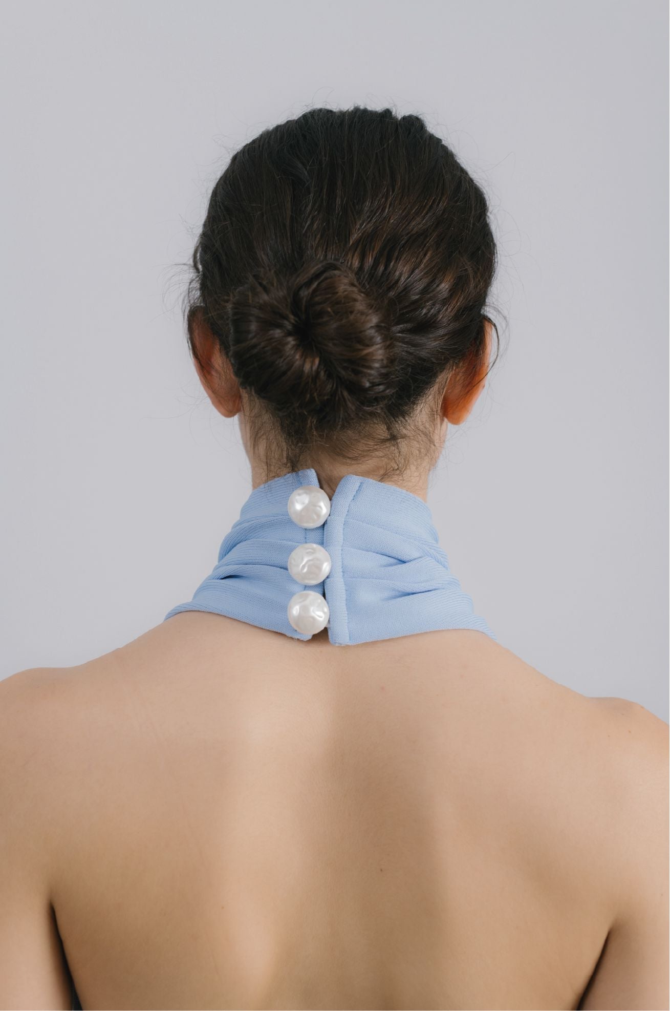 ¿Cómo llevarlo? Cruza la parte derecha del top hacia la izquierda y haz lo mismo con la parte izquierda. Luego, abrocha las tres perlas en el cuello para lograr este efecto cruzado frontal.