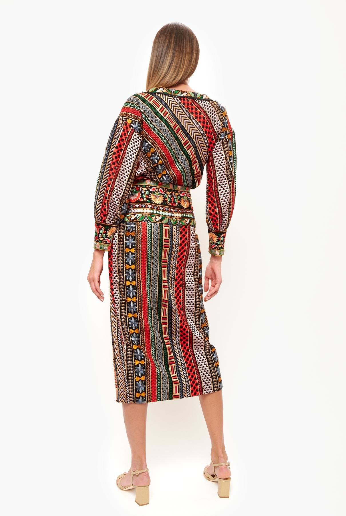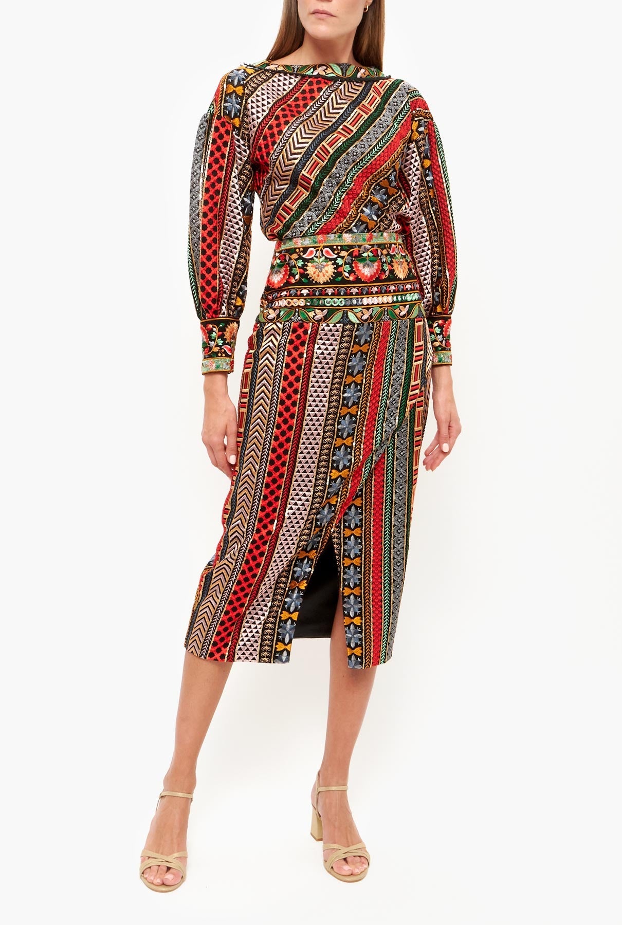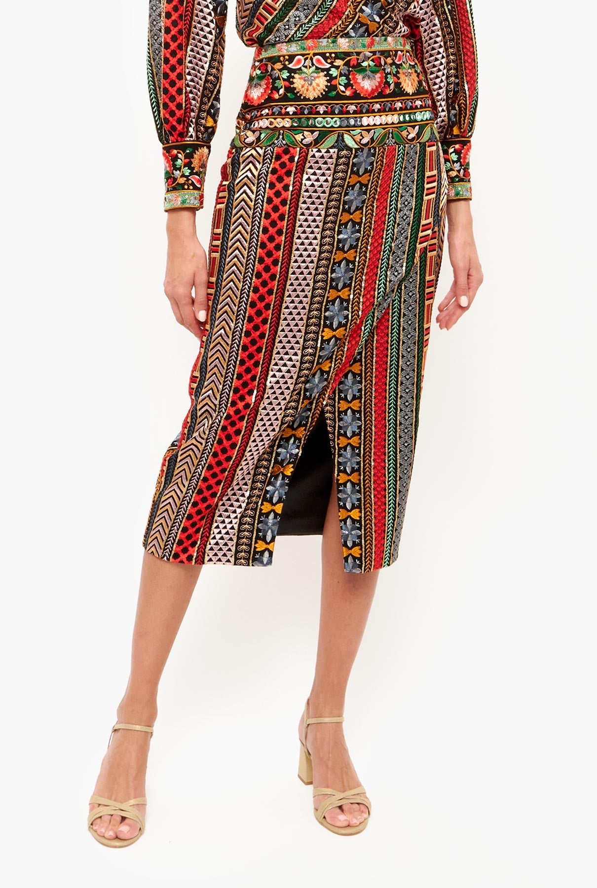 Falda midi de cintura alta. abertura delantera en el bajo y volante. Cierre con cremallera lateral invisible. Diseñado por Leyre Doueil